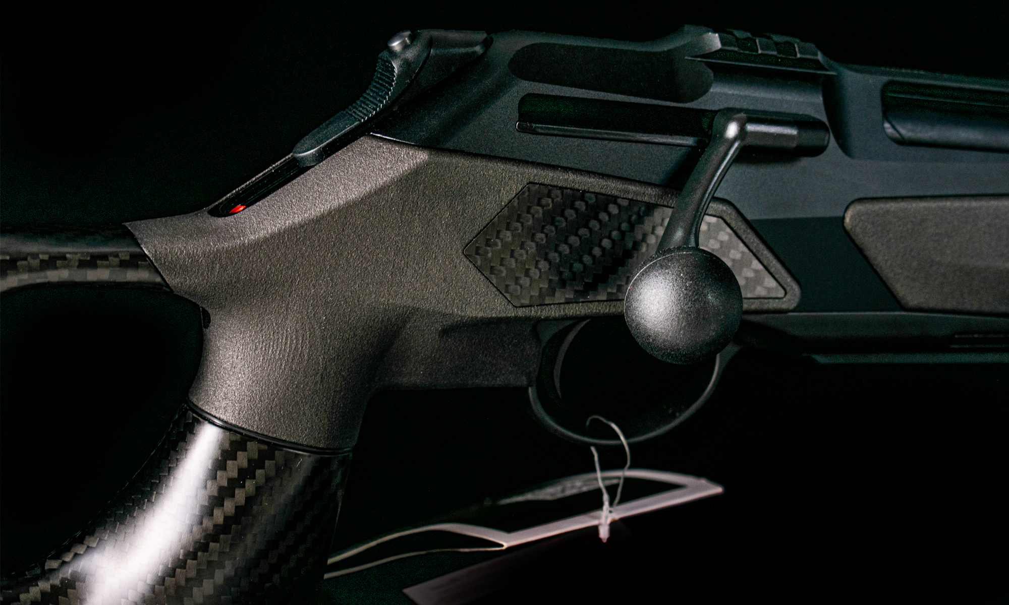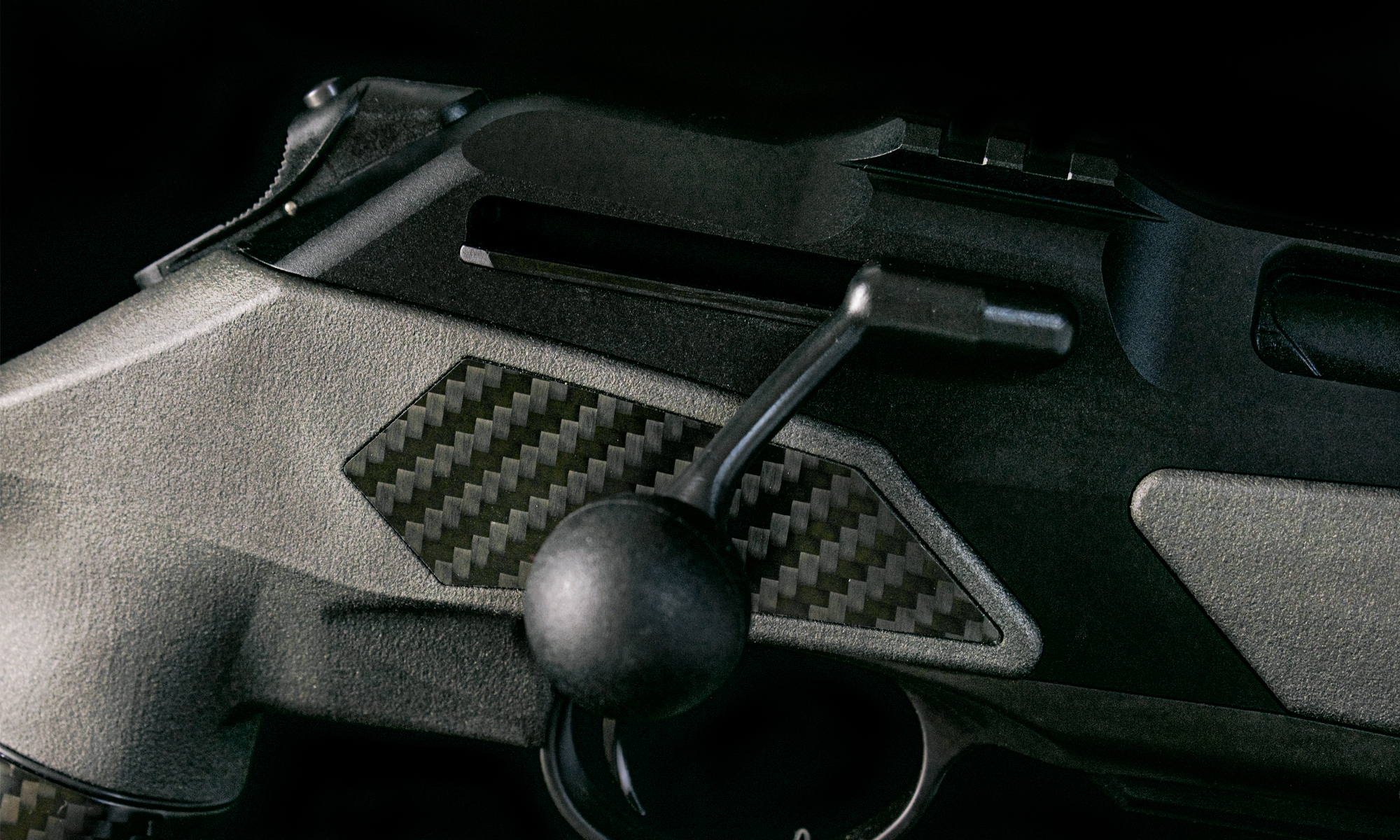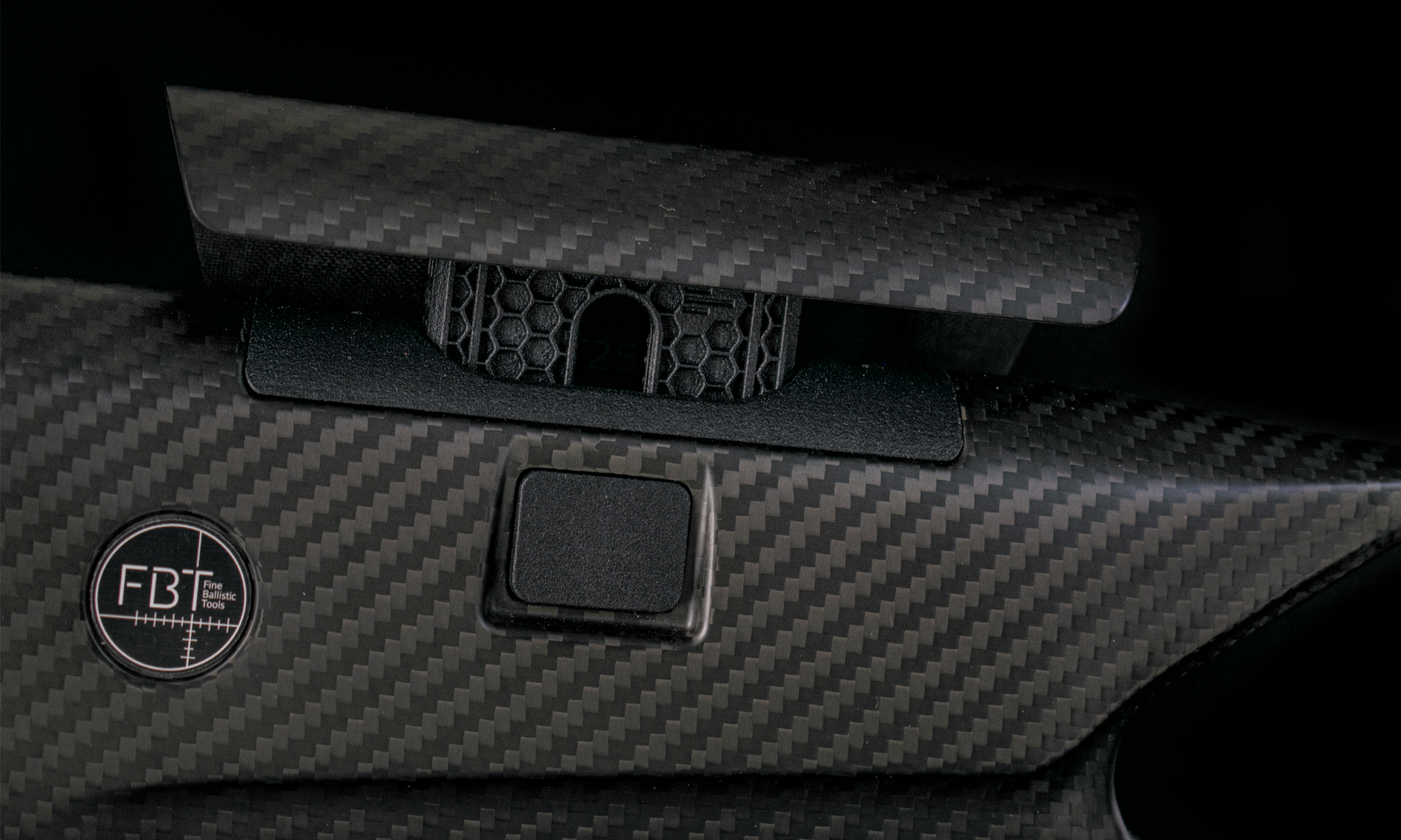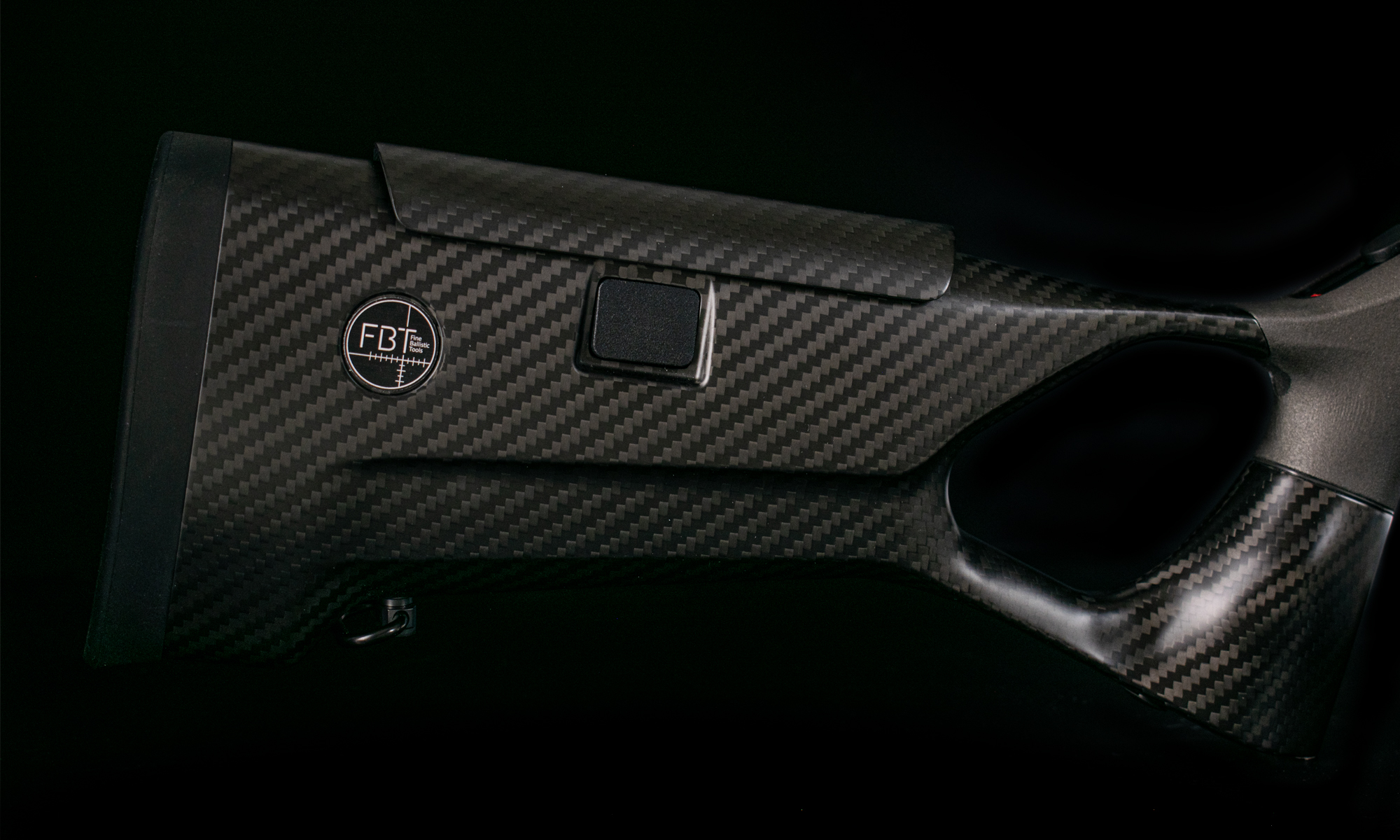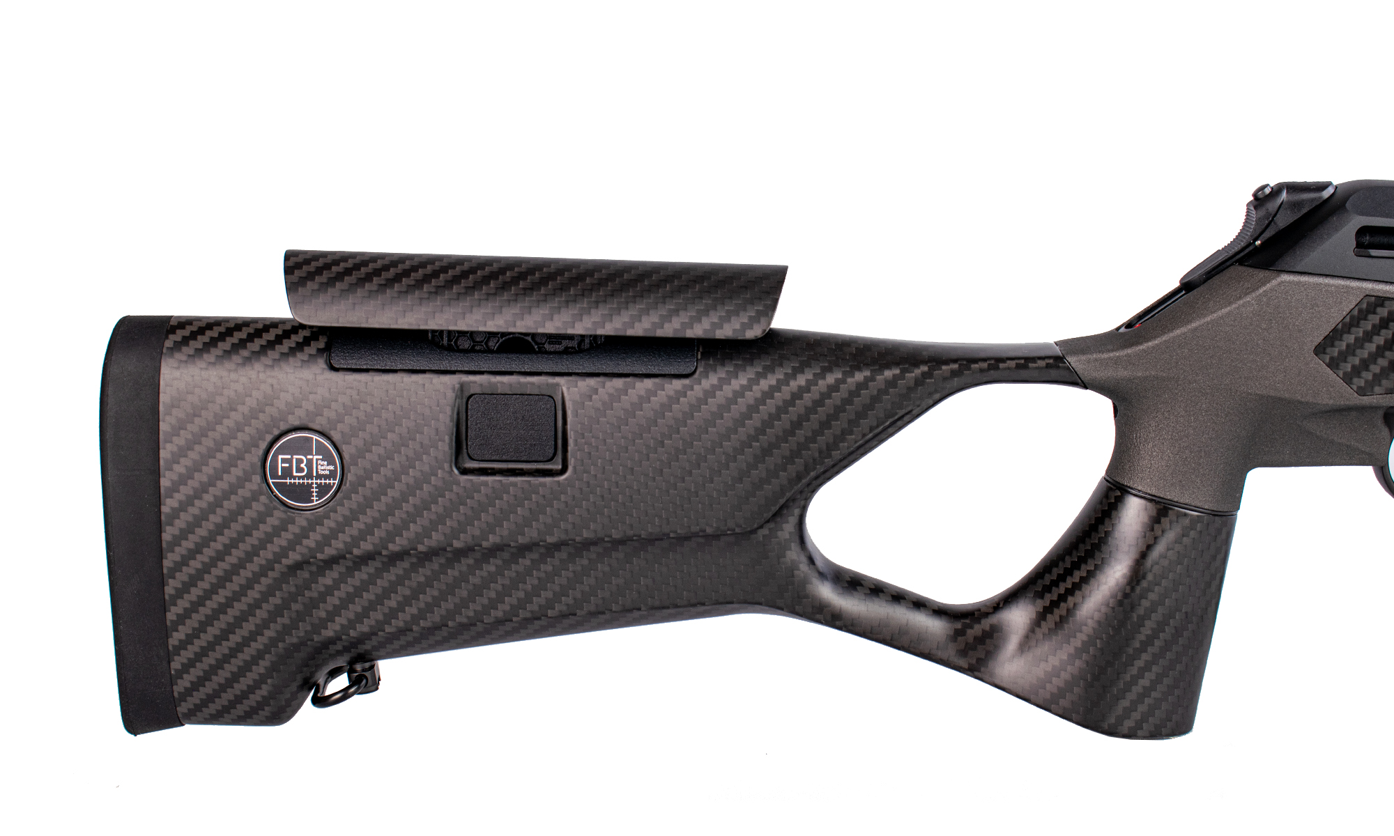 Pat Carbon FBT (Custom Upgrade): Înlocuind patul sintetic standard, fibra de carbon FBT reduce considerabil greutatea totală a armei și oferă o rigiditate structurală superioară. Designul ergonomic cu orificiu pentru degetul mare (thumbhole) asigură o priză stabilă și o absorbție excelentă a reculului.