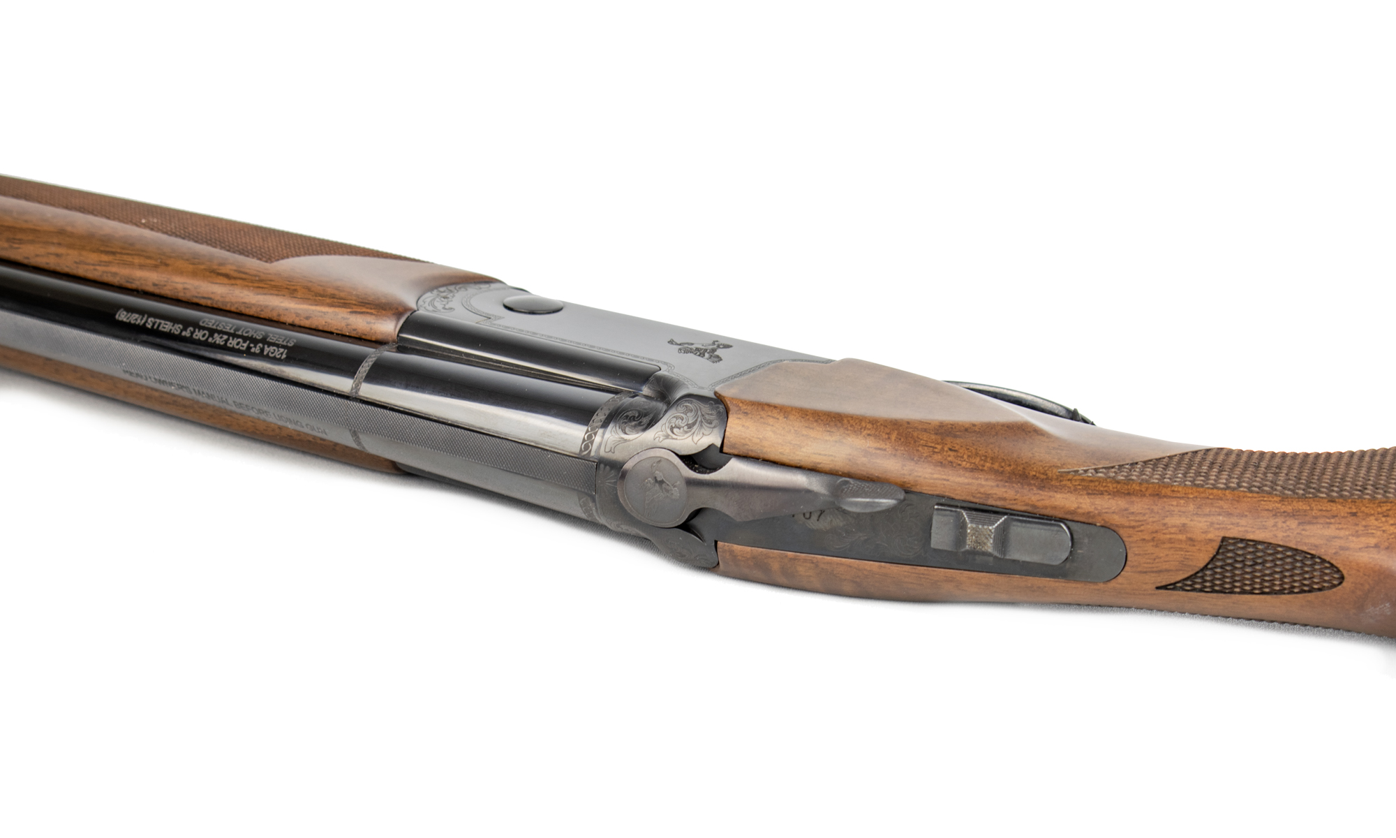 Configurație: Calibrul 12, echipat cu țevi de 76 cm, oferind o precizie excelentă la distanțe mari și o distribuție uniformă a grupajului.