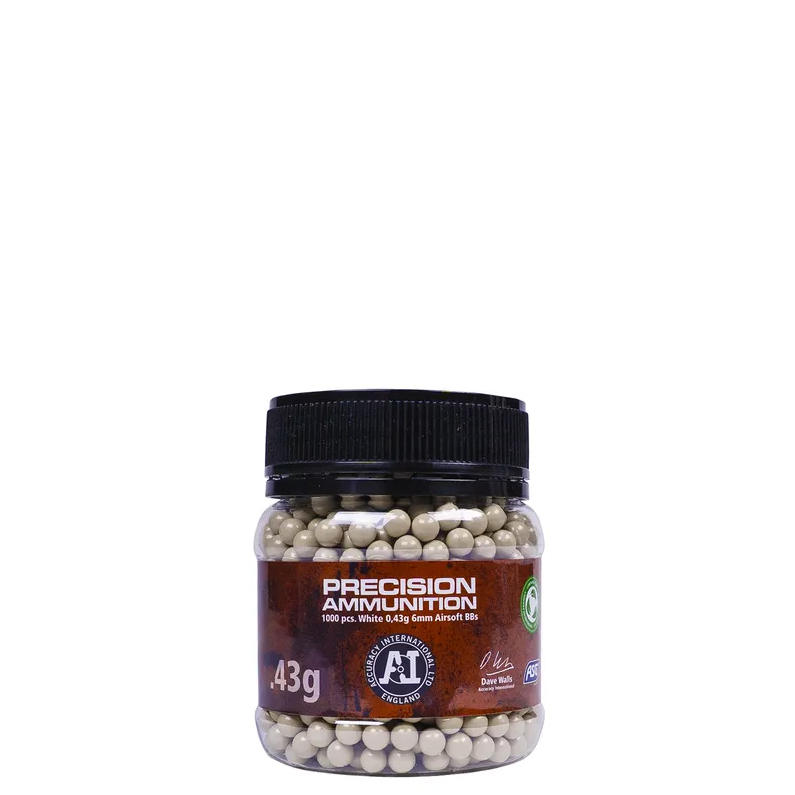 Accuracy International Precision Ammunition BBs 0.43g PLA sunt bile de greutate mare și calitate extremă, create special pentru puști airsoft sniper de 6 mm. Fabricate sub licență oficială Accuracy International, aceste BB-uri sunt produse la cele mai stricte toleranțe de greutate și dimensiune, oferind precizie constantă și performanță la distanțe lungi.