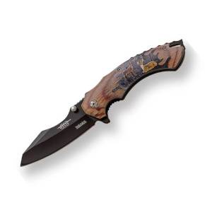 Joker JKR0112 este un briceag pliant cu lamă de 7 cm realizată din oțel inoxidabil și mâner din Zamak, decorat cu un motiv vânătoresc. Este un model compact și funcțional, ideal pentru utilizare zilnică sau pentru activități outdoor care necesită un cuțit ușor și rezistent. Mecanismul de blocare este de tip liner lock, asigurând siguranța în timpul folosirii. Fiind un cuțit de dimensiuni reduse, este foarte practic pentru portul în buzunar sau ca un al doilea cuțit la drumeții și vânătoare. Fabricat în China, acest model combină aspectul atractiv cu utilitatea pentru pasionații de bricege de calitate.