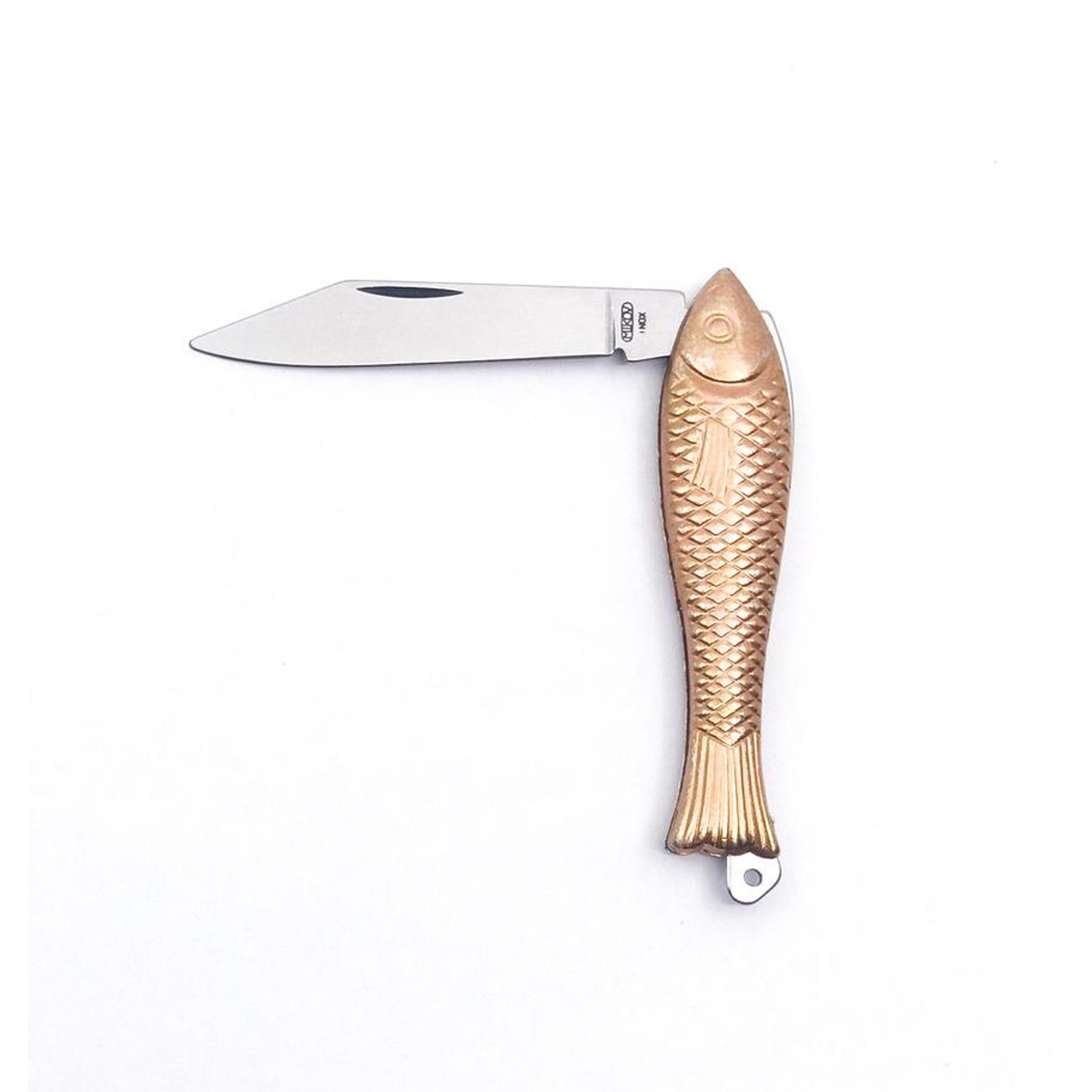 Cumpără legendarul briceag Mikov Fishlet (Peștișorul) cu finisaj Yellow Stonewash. Oțel inoxidabil 420, mâner din zinc auriu, design retro de colecție. Livrare rapidă!