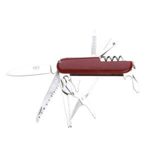Cuțit de buzunar fabricat în Elveția cu 11 funcții și cântare elegante din lemn