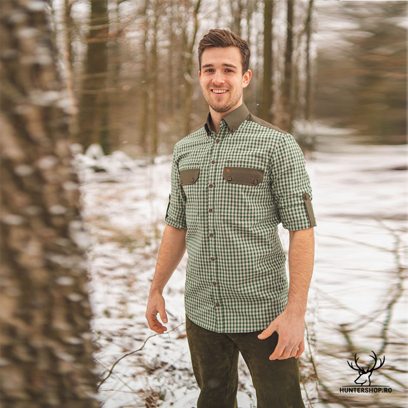 Cămașă bărbați cu mânecă 1/1 și guler Haifisch (guler tip rechin) cu sistem Button-Down