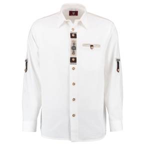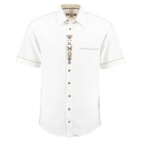 Cămașă tradițională bărbătească OS-Trachten, albă, cu guler Stehkragen și broderie decorativă