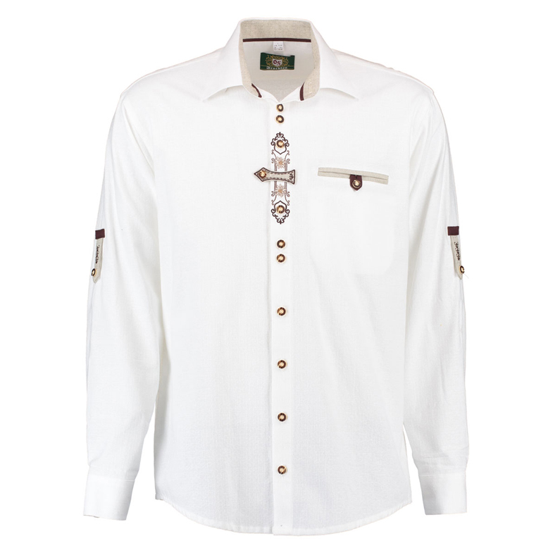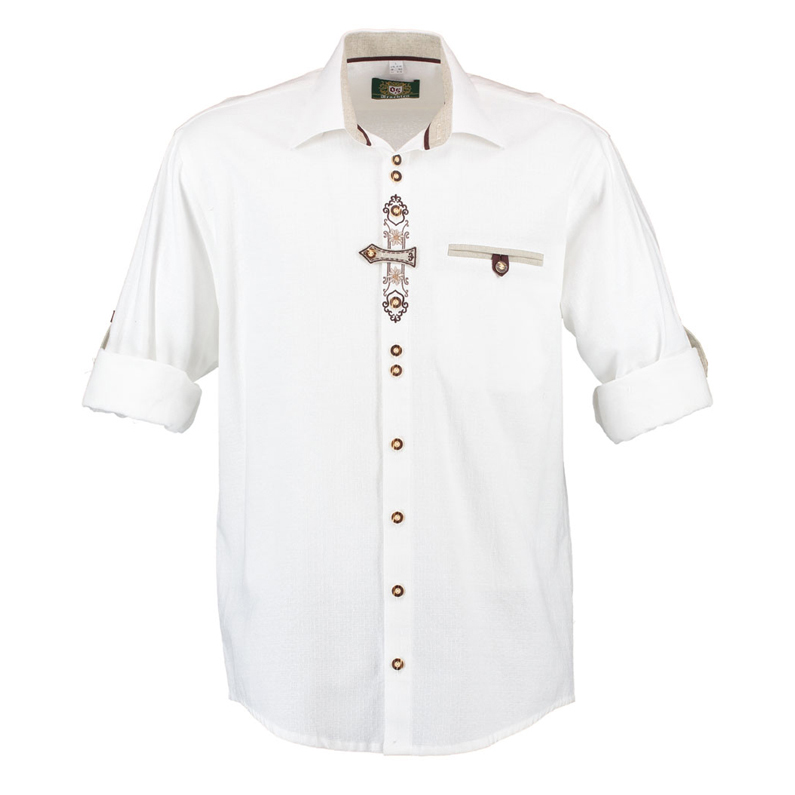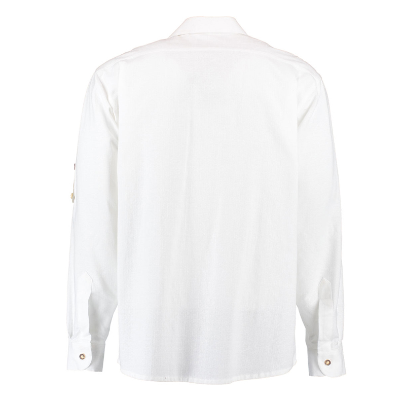Cămașa bărbătească OS-Trachten model 420037-3003, în culoarea albă, este confecționată din 100% bumbac de calitate, oferind confort și durabilitate. Această piesă face parte din colecția dedicată evenimentelor Wies'n (Beer festival), având un design clasic dar adaptat pentru ocazii festive și casual în aer liber.