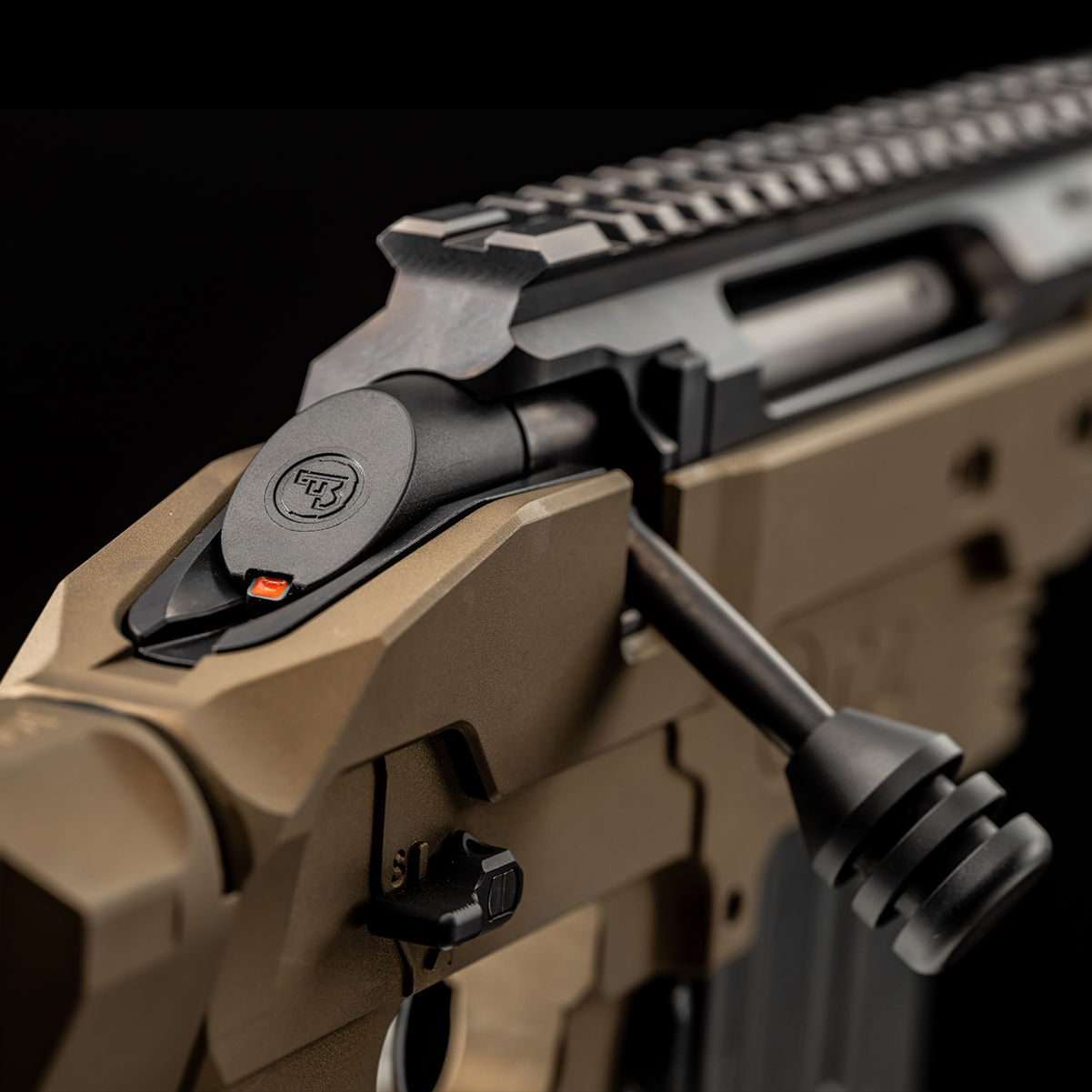 Țeavă Heavy Barrel cu Frână de Gură: Țeava forjată la rece are un profil gros pentru stabilitate termică și vine echipată standard cu o frână de gură performantă pentru reducerea drastică a reculului.