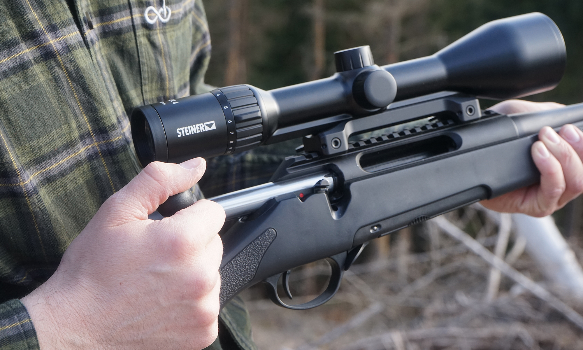 Siguranță Intuitivă: Siguranța cu două poziții este amplasată ergonomic, permițând operarea silențioasă chiar și în momentele critice ale vânătorii.