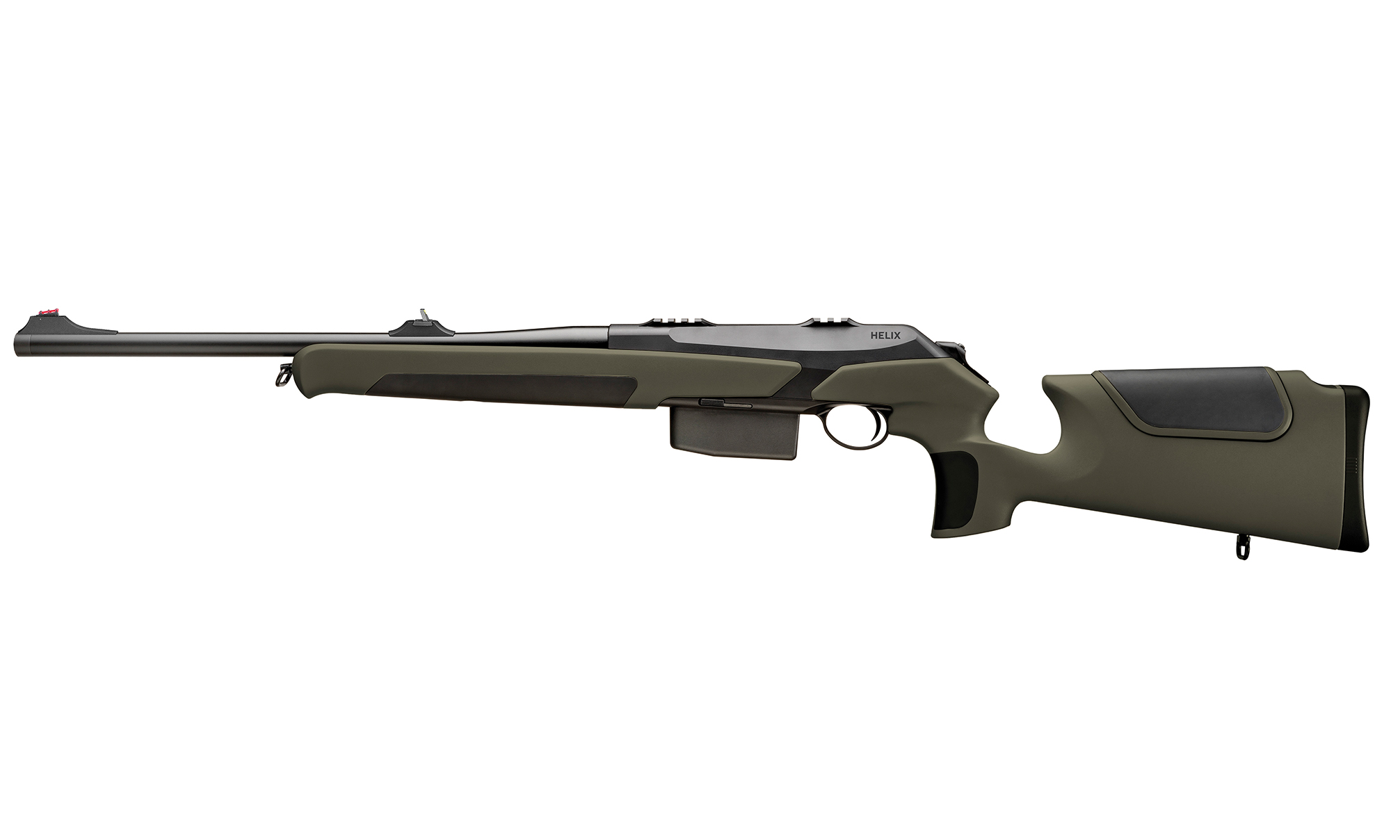 Varianta Magnum a carabinei Merkel RX Helix Speedster Green aduce puterea necesară pentru vânătoarea la distanțe mari și pentru vânat mare, păstrând în același timp ergonomia revoluționară a seriei Speedster. Patul sintetic „SpeedStock” de culoare verde oliv oferă o rezistență superioară la intemperii și o manevrabilitate de neegalat, fiind ideal pentru vânătoarea montană sau în condiții de teren accidentat.