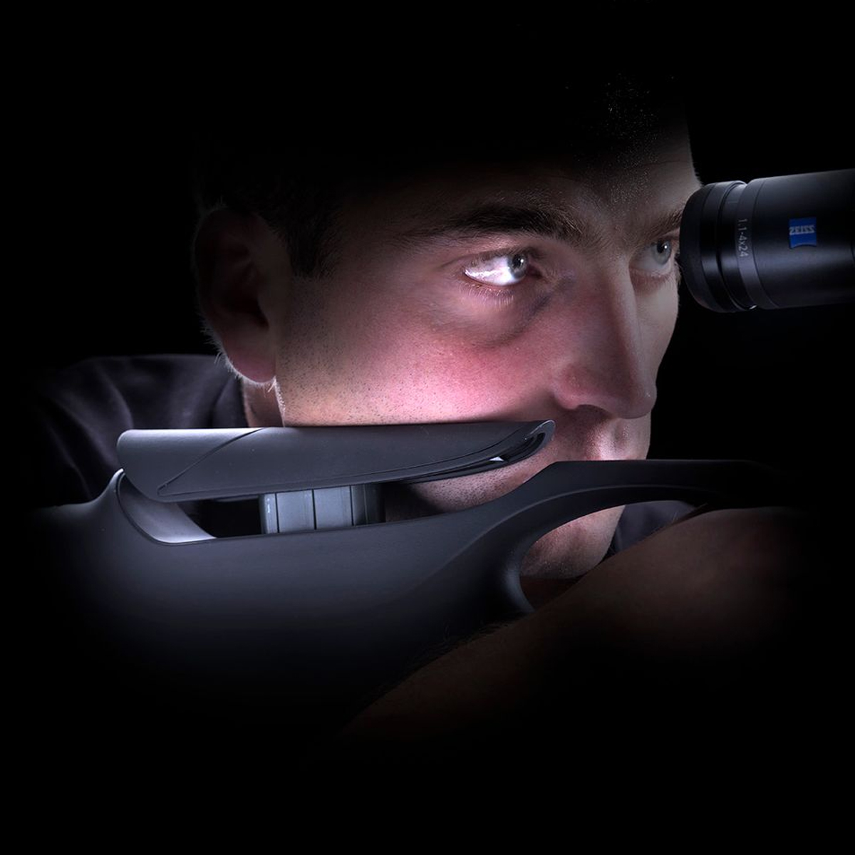 Design Thumbhole: Orificiul pentru degetul mare permite o poziție naturală și relaxată a încheieturii mâinii, oferind o stabilitate mult superioară în timpul ochirii.
