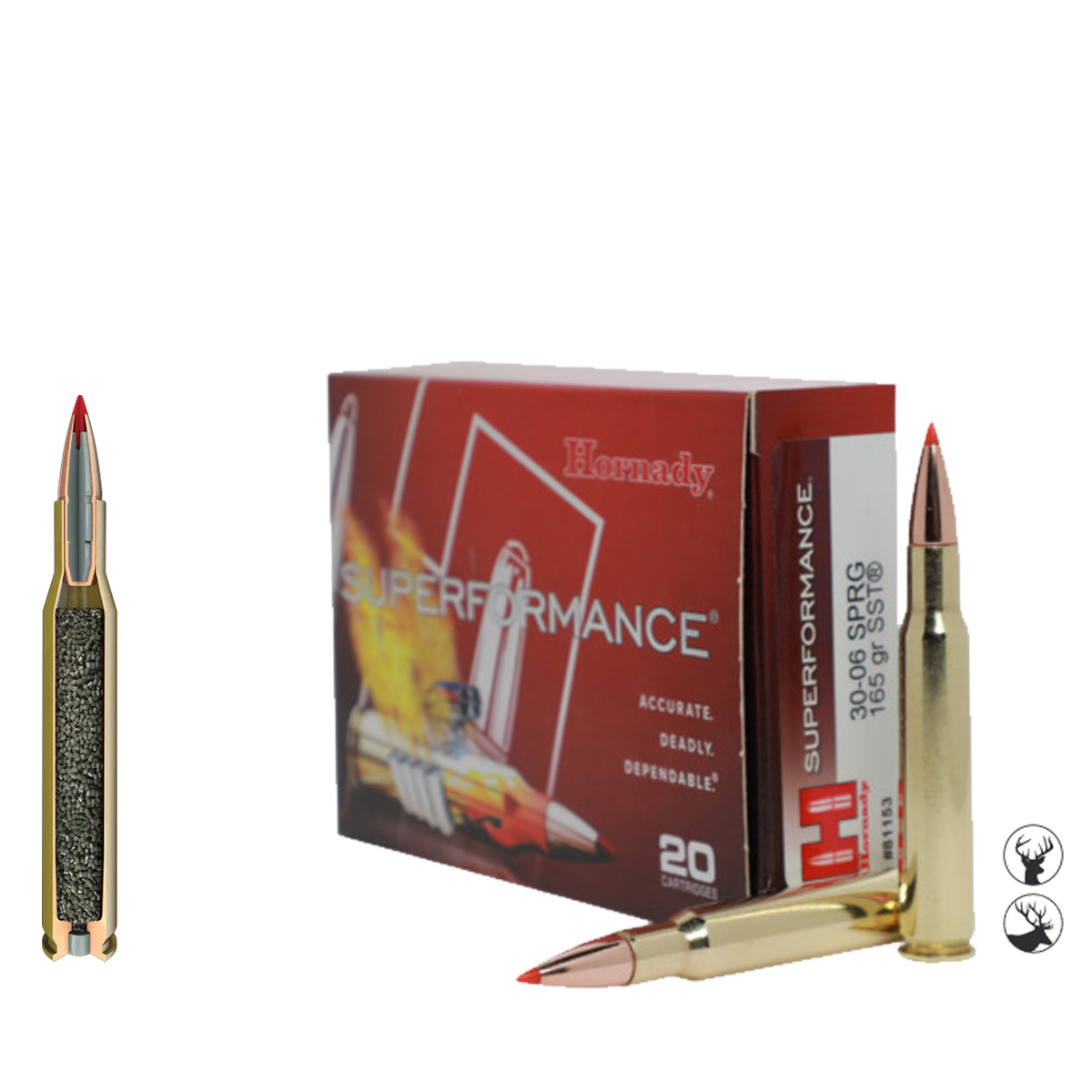 Maximizează potențialul carabinei tale cu Hornady Superformance® .30-06 Springfield 165 gr SST. Prin utilizarea unei tehnologii revoluționare de propulsie, acest cartuș atinge viteze cu 30 până la 60 m/s mai mari decât orice muniție convențională, fără a crește reculul sau presiunea în cameră. Împreună cu glonțul SST® (Super Shock Tip), această încărcare oferă o traiectorie extrem de plată și un transfer de energie instantaneu, fiind ideală pentru vânătoarea la distanțe medii și mari.