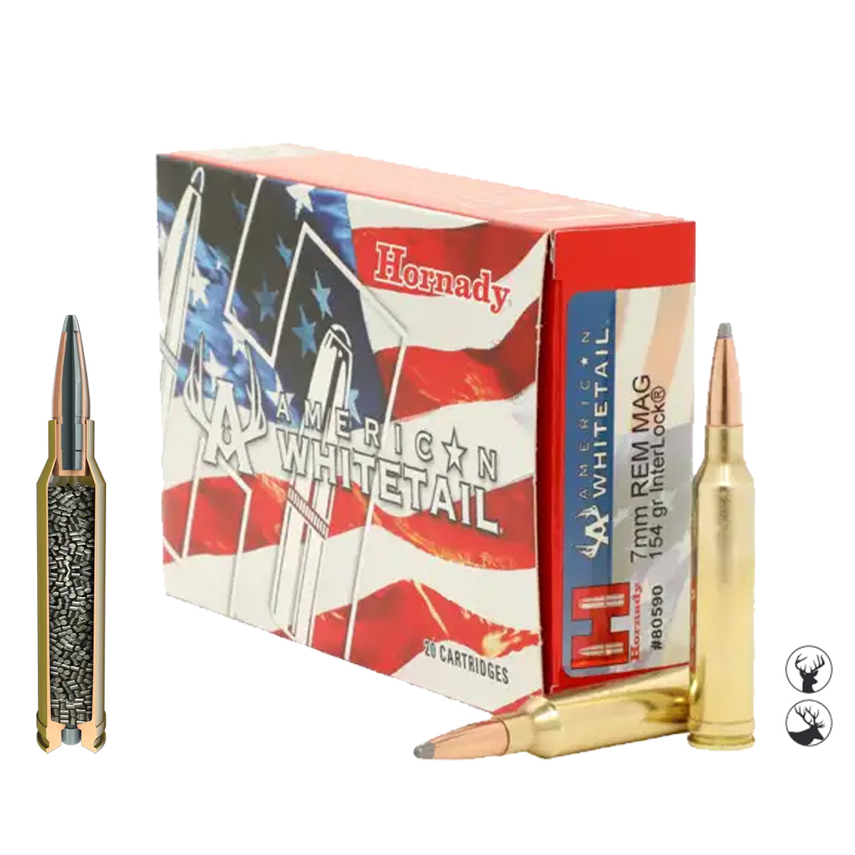 Experimentează performanța balistică de excepție cu Hornady American Whitetail® 7mm Remington Magnum. Acest cartuș combină unul dintre cele mai versatile calibre Magnum cu legendarul proiectil InterLock®, oferind vânătorului o soluție letală pentru o gamă largă de vânat mare. Greutatea de 154 grains este considerată "punctul optim" pentru acest calibru, oferind un echilibru ideal între viteză mare, recul gestionabil și energie de impact devastatoare.
