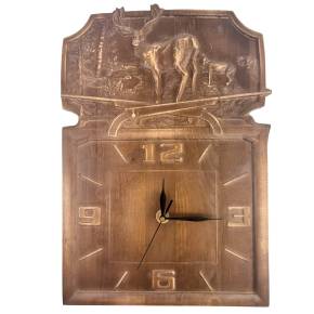 Ceas de perete | sculptat din lemn | motive vanatoresti | vertical cu cerb