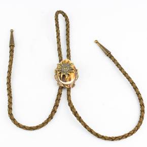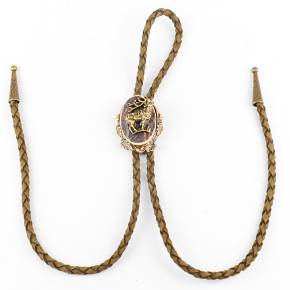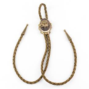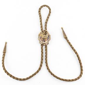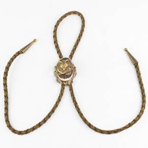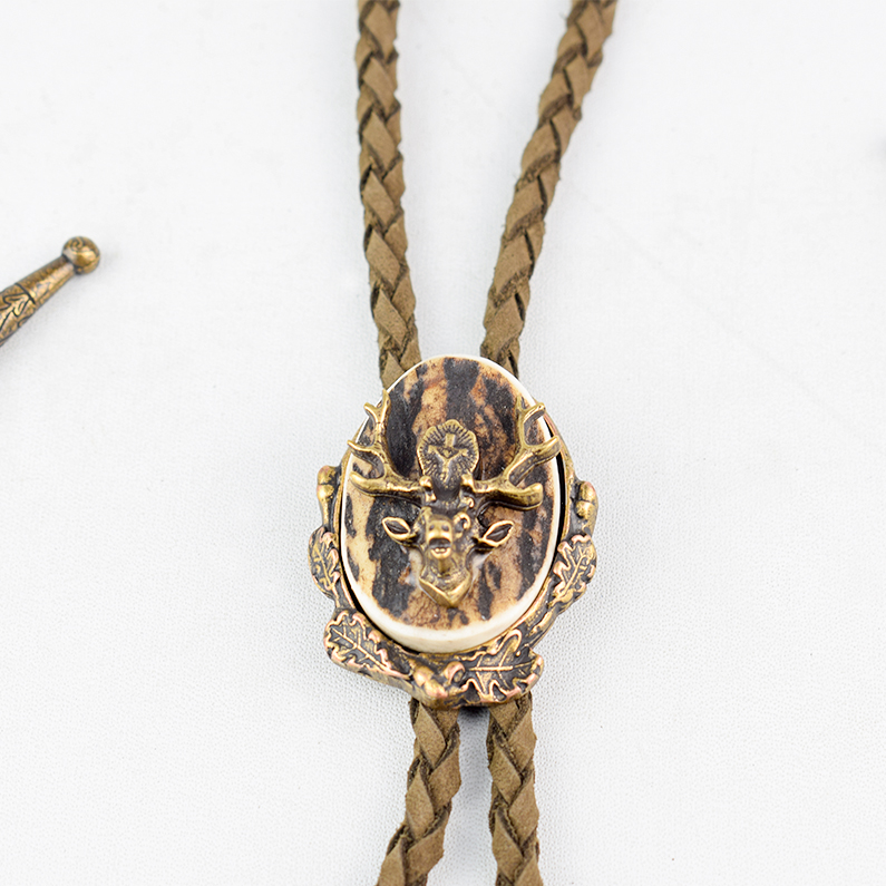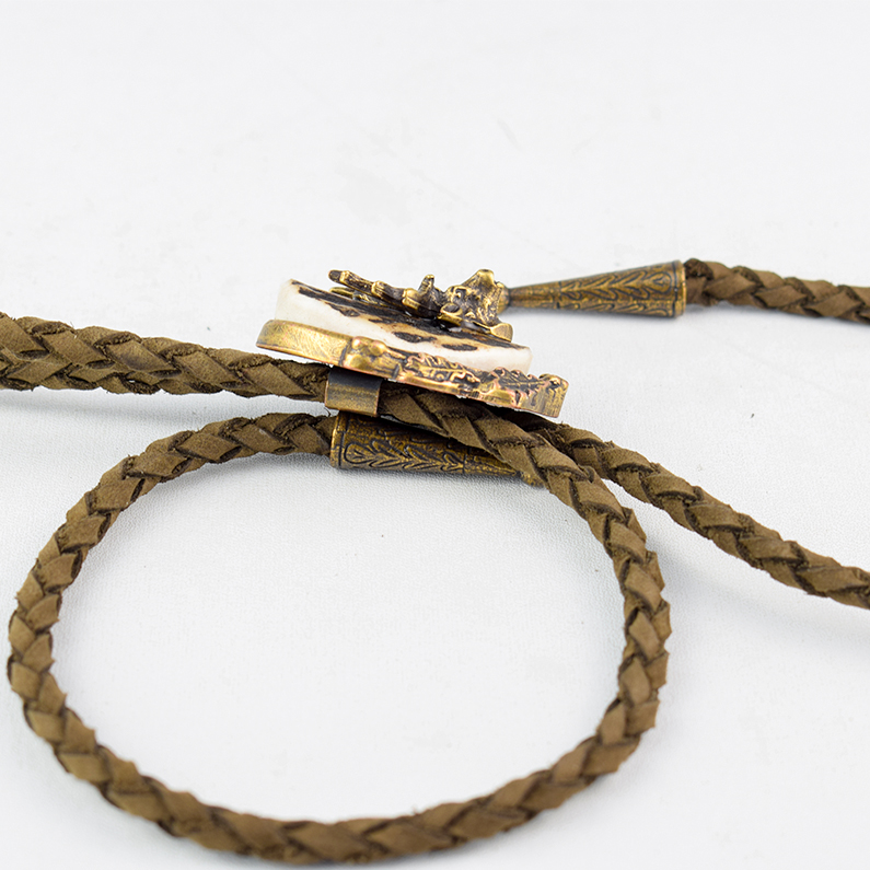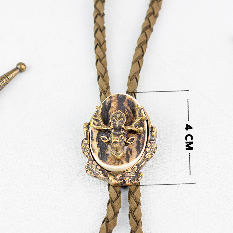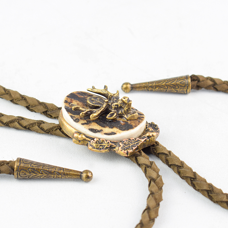 🦌 Descriere: Cravată vânătorească realizată din alamă turnată și corn de cerb, cu detalii fine și finisaj rustic. Snurul este din piele naturală împletită, prevăzut cu capete metalice gravate. Elementul central prezintă un cap de cerb în relief, simbol al nobleței și al tradiției cinegetice, ideal pentru ținute tematice sau evenimente de profil.