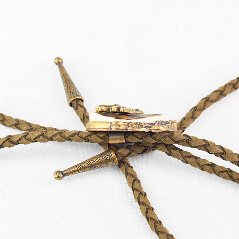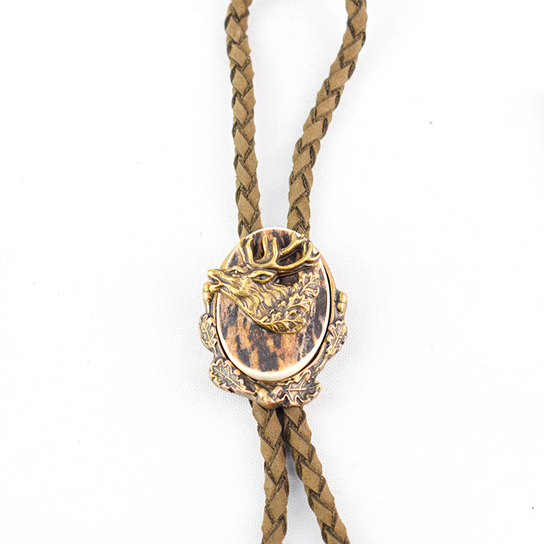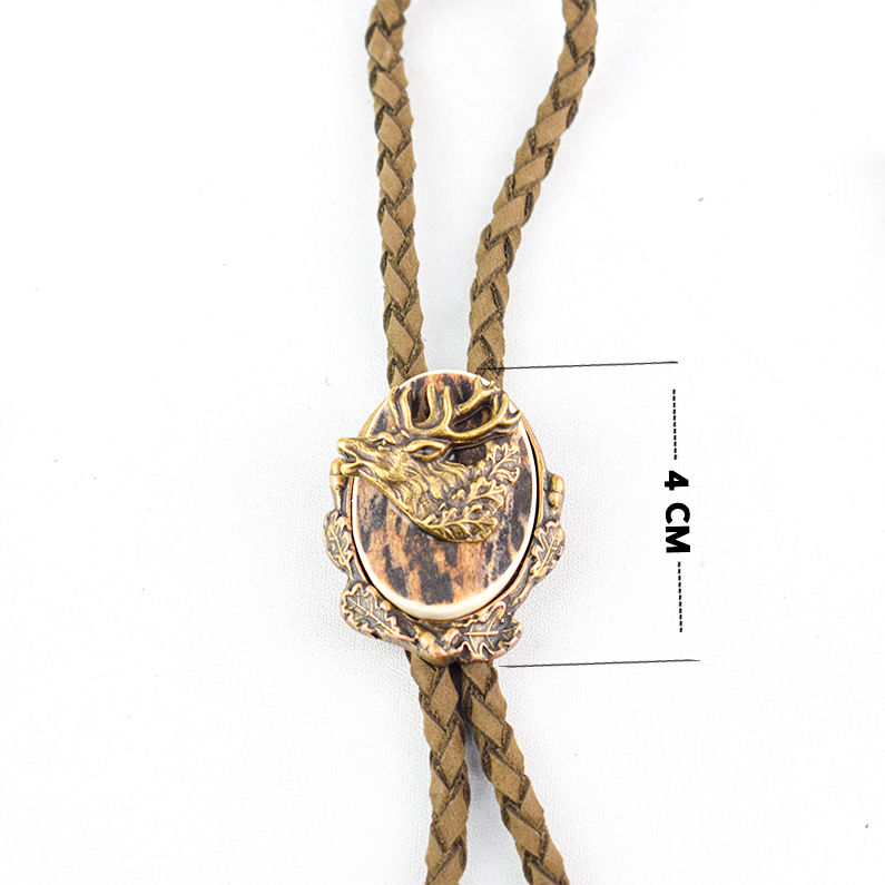 🦌 Descriere: Cravată vânătorească realizată din alamă turnată și corn de cerb, cu detalii fine și finisaj rustic. Snurul este din piele naturală împletită, prevăzut cu capete metalice gravate. Elementul central prezintă un cerb în profil, simbol al nobleței și al pasiunii pentru natură, ideal pentru ținute tematice sau evenimente cinegetice.
