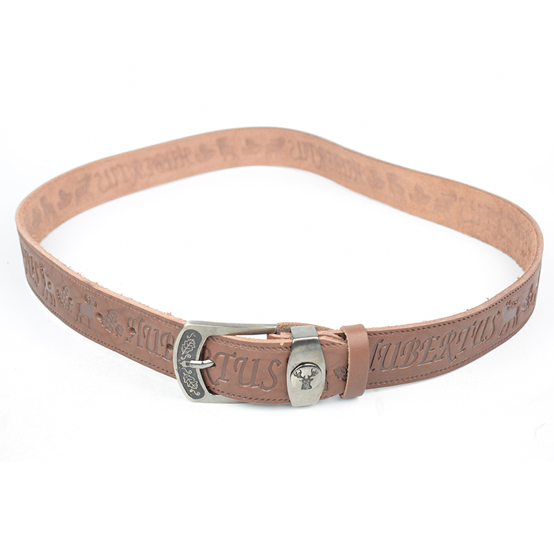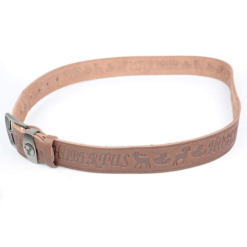 Curea de pantaloni din piele „Hubertus” cu insignă din cerb este un accesoriu elegant și rezistent, conceput special pentru pasionații de vânătoare sau iubitorii de stil tradițional. Fabricată din piele naturală de înaltă calitate, această curea impresionează prin gravura decorativă cu motive vânătorești și inscripția „HUBERTUS”, la care se adaugă o insignă metalică distinctivă cu cerb pe cataramă, ce simbolizează noblețea și spiritul naturii.
