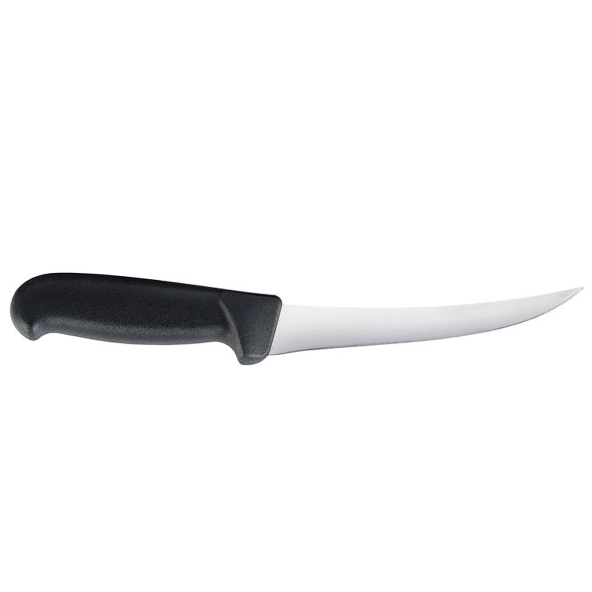 Ergonomie pentru Profesioniști: Mânerul din polipropilenă este proiectat pentru a fi utilizat în condiții dificile. Textura sa oferă o aderență sigură chiar și în medii umede sau grase, protejând degetele împotriva alunecării spre lamă.