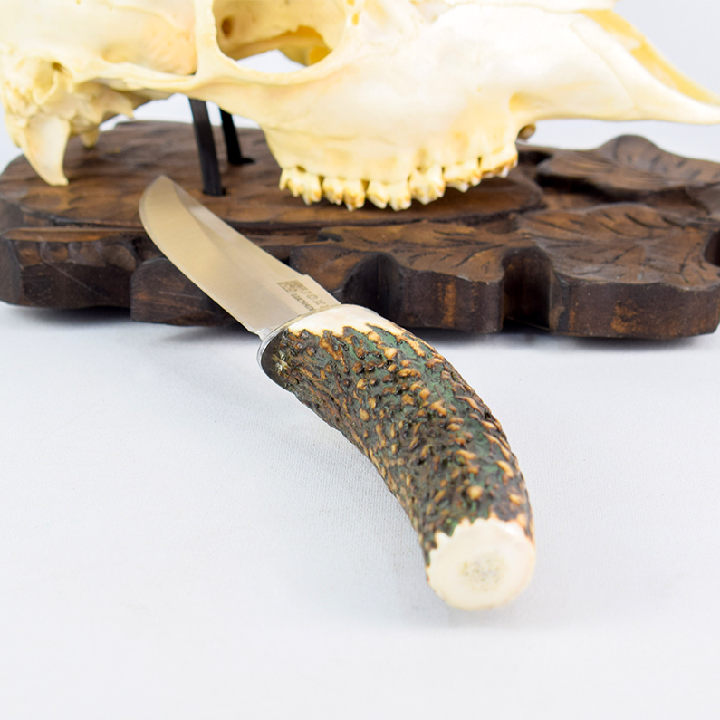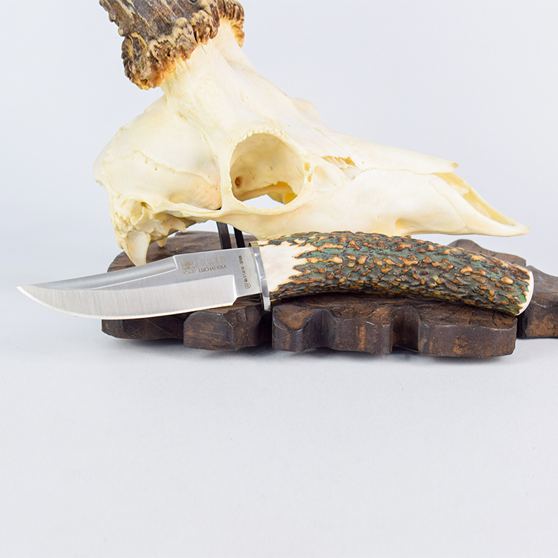 Fiecare piesă este unică datorită mânerului din vârf de corn de cerb, selectat manual pentru a oferi o aderență excelentă și un aspect estetic deosebit.
