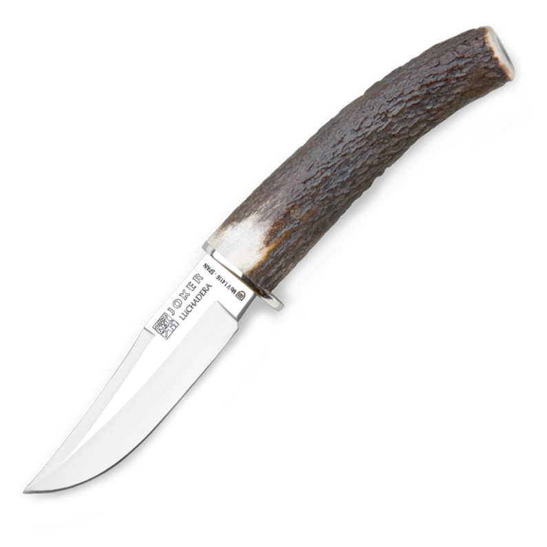 Adăugați o piesă de colecție echipamentului dumneavoastră cu Joker Luchadera CC70, un cuțit de vânătoare care impresionează prin designul său rustic și autentic. Fabricat manual în Albacete, Spania, acest model se distinge prin mânerul realizat din vârful cornului de cerb, păstrând forma naturală a acestuia pentru un aspect tradițional inconfundabil.