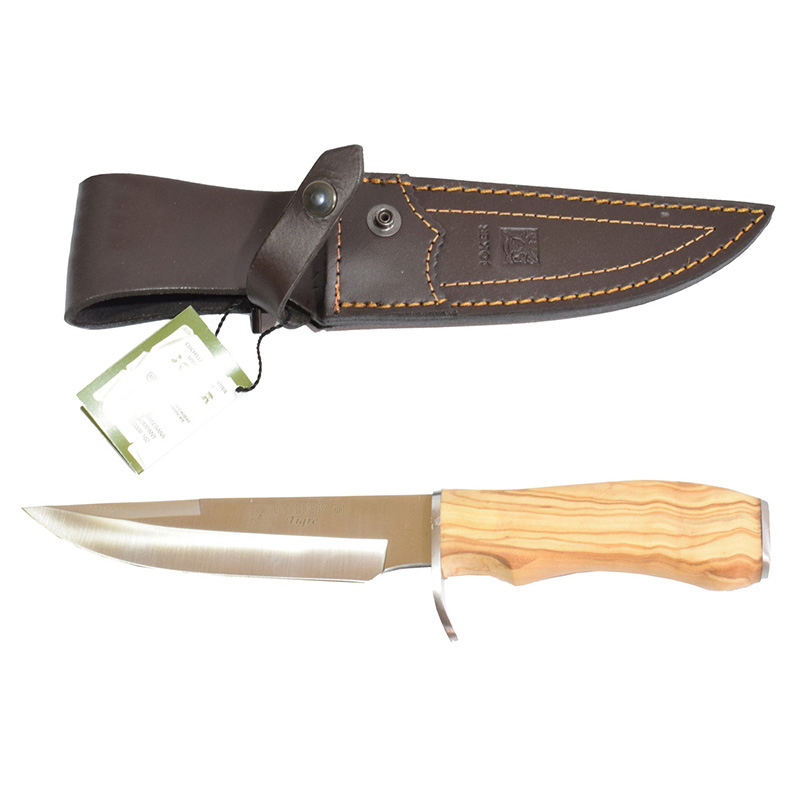 Cutit pentru vanatoare, din seria Tigre de la Joker, are manerul solid realizat din lemn de maslin si lama lunga de 14.5cm, robusta din otel aliaj Molybdenun Vanadium.