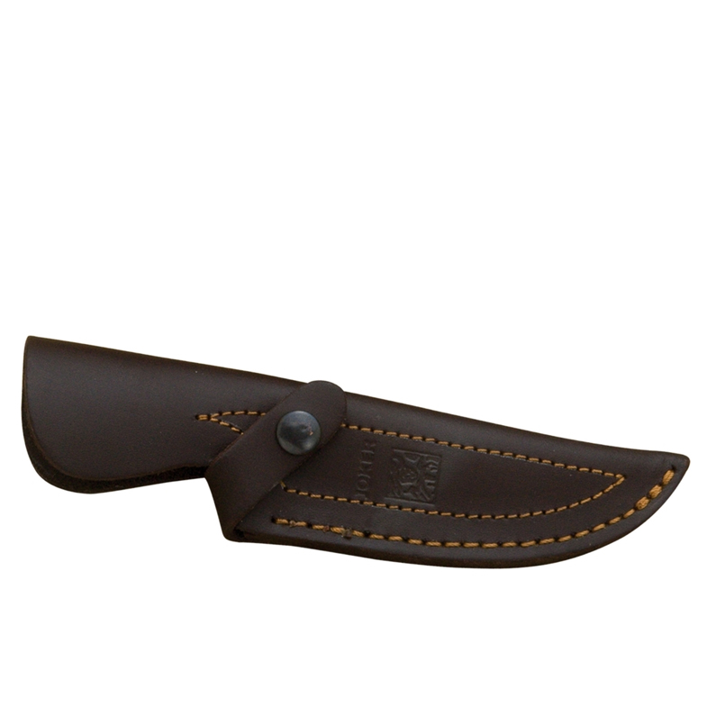 Mânerul este confecționat din lemn natural de măslin (olive wood), are o lungime de 11 cm și asigură o priză comodă chiar și în condiții dificile, iar garda din inox oferă protecția mâinii. Cuțitul cântărește aproximativ 190 grame, iar teaca premium din piele maro, inclusă, oferă protecție și un transport sigur. Lungimea totală a cuțitului este de 22,5 cm.