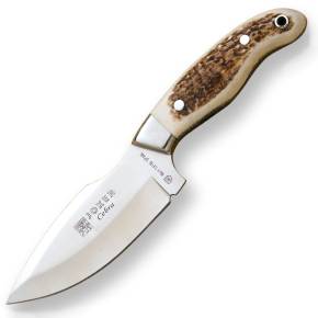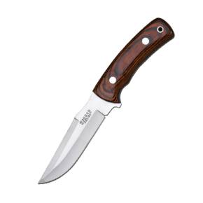 Cuțitul de vânătoare Joker Gamo a fost fabricat sub denumirea de origine Albacete (Spania). Este cuțitul sportiv perfect pentru seturile dvs. de vânătoare, în același timp în care este ideal și foarte util pentru camping, drumeții, bushcraft etc. Cuțitul sportiv Joker Gamo este alcătuit dintr-o lamă full tang din oțel inoxidabil Mova 1.4116 cu o lungime a lamei de 13 cm, lățimea lamei de 3,2 cm și o grosime de 3,7 mm. Lungimea mânerului este de 11,5 cm și este realizat din lemn de măslin. Cuțitul de vânătoare Joker Gamo este însoțit de un teacă din piele premium de culoare maro.