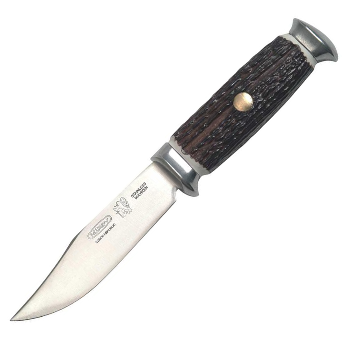 Descoperă cuțitul de vânătoare Mikov 375-NH-1. Lamă de 105 mm, mâner ergonomic și teacă din piele inclusă. Ideal pentru vânătoare, camping și outdoor.