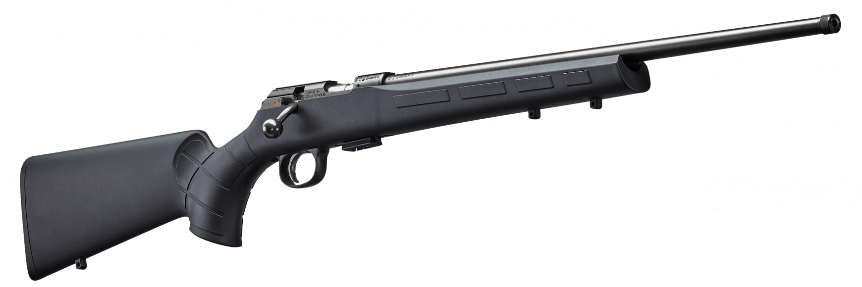 CZ 457 Synthetic, calibru .22 LR, este o carabină bolt-action ușoară, robustă și rezistentă la condiții adverse de mediu, fiind ideală pentru tir sportiv și antrenamente. Are o construcție atent realizată cu finisaje de înaltă calitate și caracteristici ergonomice moderne.
