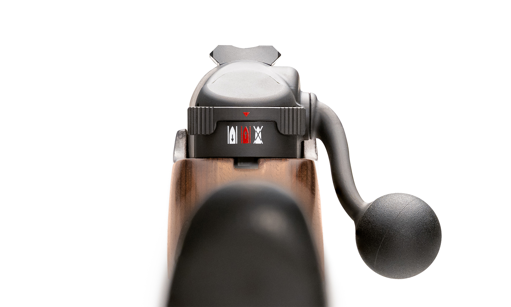 Siguranță prin Armare Manuală (Hand-Cocking): Maneta închizătorului funcționează și ca sistem de armare a percutorului. Poți merge în condiții de siguranță maximă cu cartuș în cameră, deoarece percutorul este tensionat doar prin împingerea manetei într-o poziție specifică înainte de tragere.