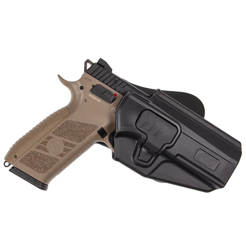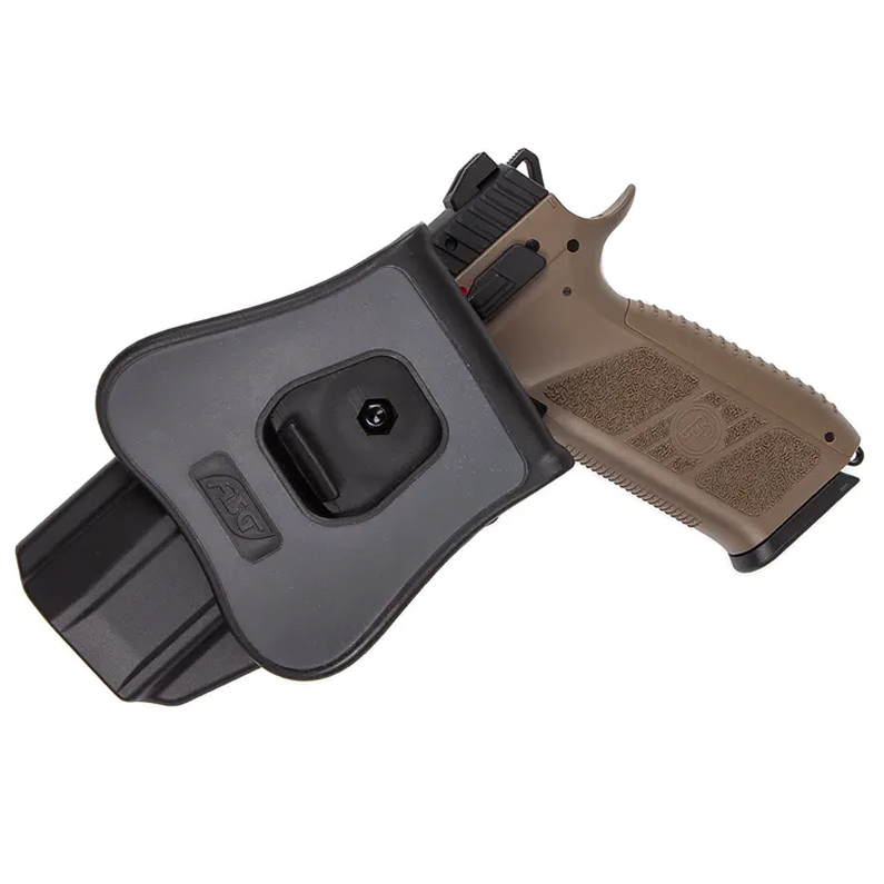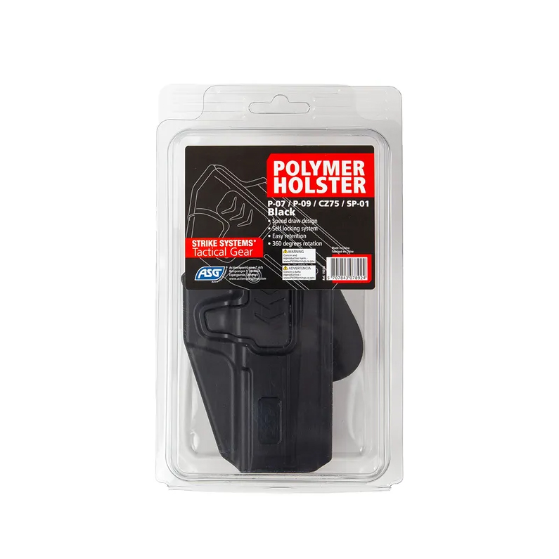 Tocul Strike Systems pentru CZ P-07 și CZ P-09 este realizat din polimer de înaltă rezistență, oferind durabilitate și greutate redusă. Dispune de sistem tactic cu eliberare rapidă și rotație la 360° (în trepte de 9°), ceea ce permite purtarea în multiple poziții: lateral, spate sau cross-draw.