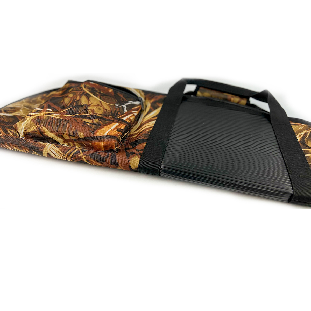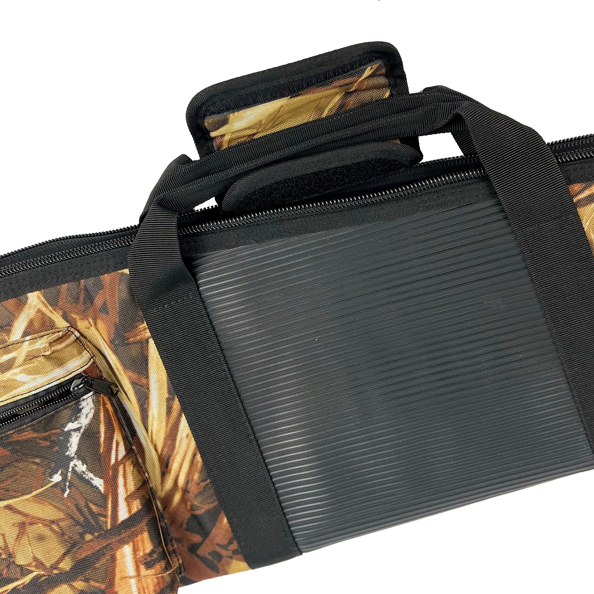 Principalul avantaj al acestui model este căptușeala din burete de 8 mm, care tapetează interiorul husei pentru a absorbi șocurile și pentru a preveni zgârierea finisajelor metalice sau a pieselor din lemn în timpul deplasării pe teren accidentat. Materialul exterior rezistent prezintă un model de camuflaj ideal pentru activitățile outdoor, ajutând la integrarea vizuală în mediul natural.