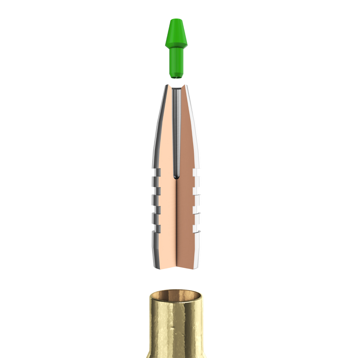 Performanță și Tehnologie: Proiectilul Ecostrike este realizat dintr-un aliaj de cupru solid, oferind o retenție de masă de aproape 100%. Această construcție non-fragmentabilă asigură o penetrare profundă și un canal de rană constant, protejând în același timp calitatea cărnii prin absența particulelor de plumb. Vârful de polimer verde inițiază expansiunea rapidă și uniformă, în timp ce placarea cu nichel reduce frecarea pe ghinturile țevii, minimizând depunerile metalice și prelungind durata de viață a armei.