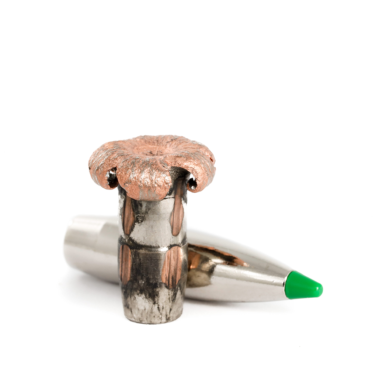 Performanță și Tehnologie: Proiectilul Ecostrike este proiectat pentru a oferi o retenție de masă de aproape 100%, eliminând riscul de fragmentare și contaminare a cărnii. Vârful de polimer verde facilitează o traiectorie aerodinamică și inițiază expansiunea imediat după impact. Cavitatea internă este proiectată pentru a forța o deformare sub formă de ciupercă, chiar și la viteze mai mici, asigurând un transfer de energie letal. Placarea cu nichel reduce frecarea pe țeavă, protejând armele și prelungindu-le durata de viață.