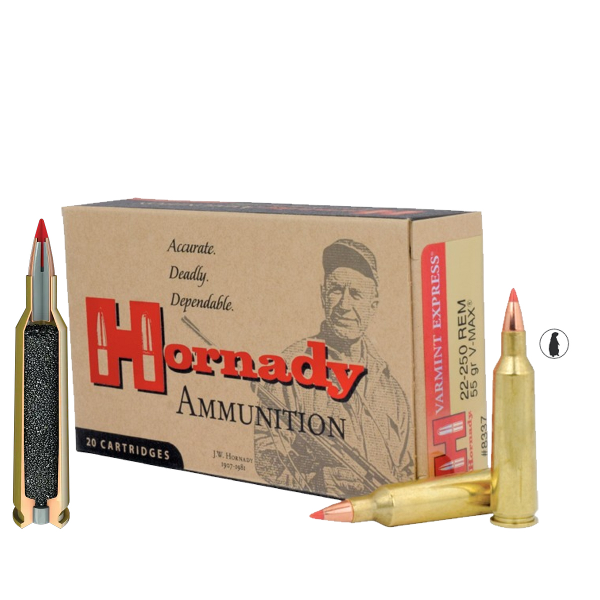 Atingeți performanțe balistice de elită cu muniția Hornady 22-250 Rem 55 gr V-MAX, alegerea nr. 1 pentru vânătoarea de dăunători (varmint) și prădători de talie mică. Recunoscut pentru viteza sa fulgerătoare și traiectoria incredibil de plată, calibrul 22-250 Remington este dus la perfecțiune de către Hornady prin integrarea legendarului proiectil V-MAX®.