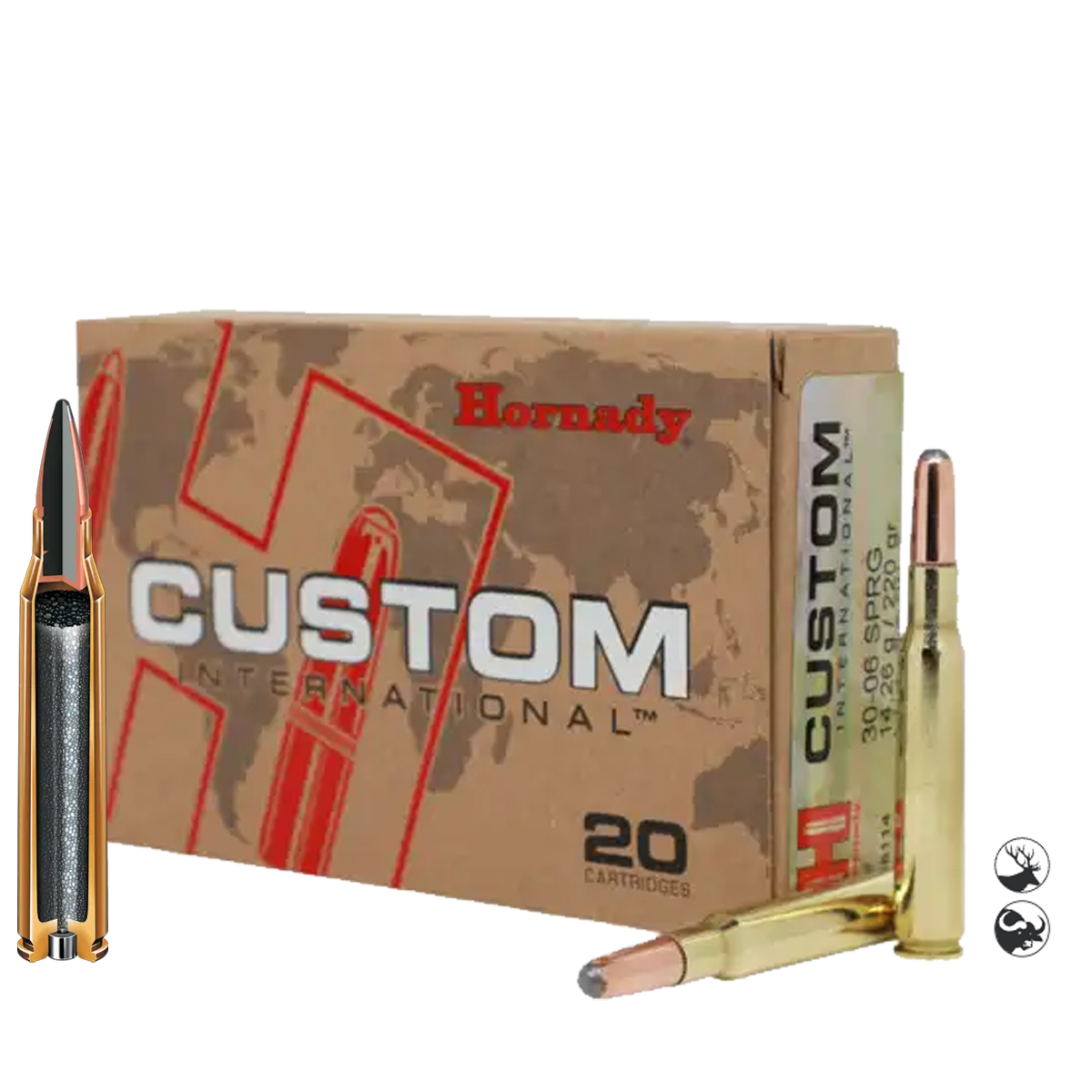 Alegeți Hornady Custom International pentru o forță de impact devastatoare și o fiabilitate legendară în calibrul 30-06!
