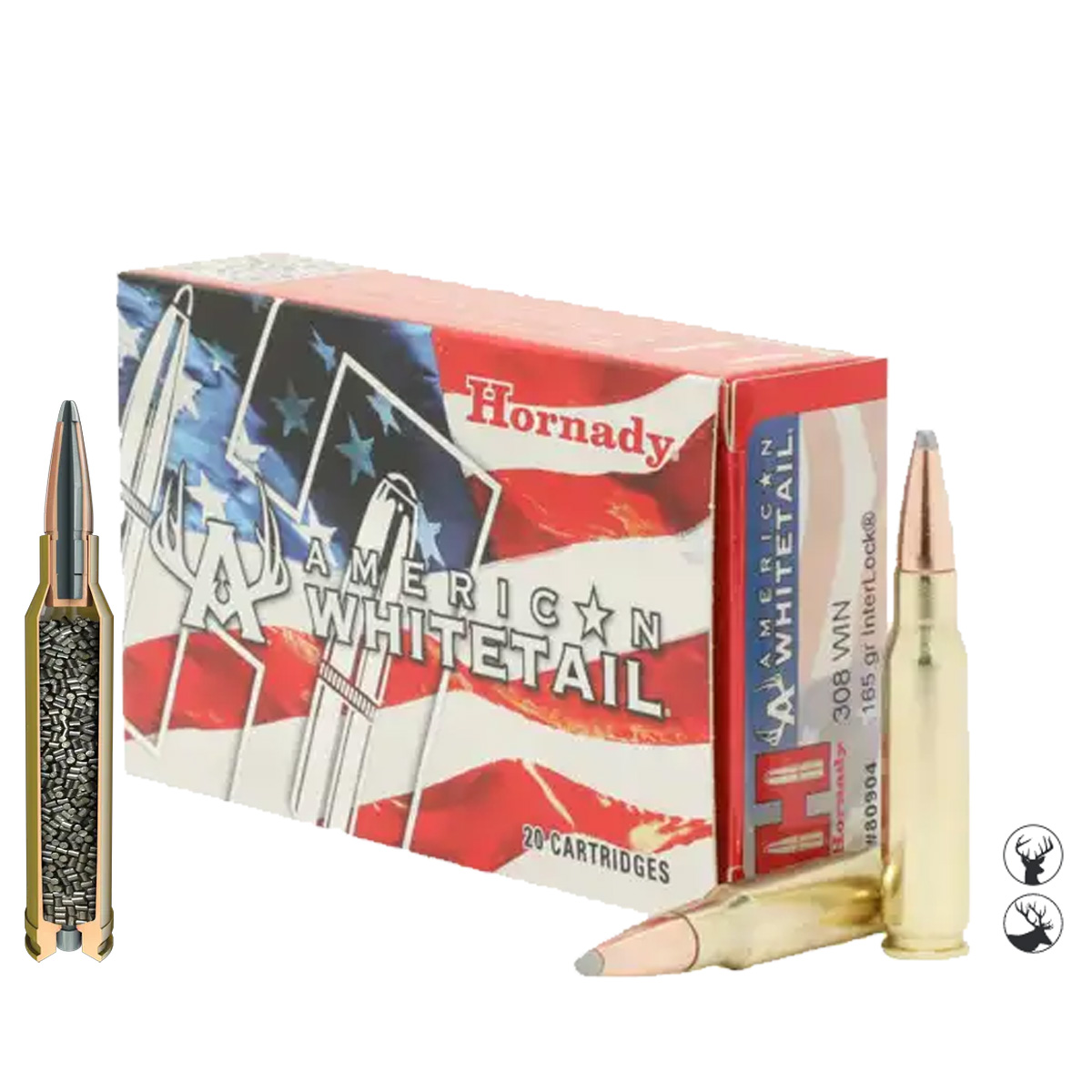 muniție .308 win 165 gr, Hornady 8094, Hornady American Whitetail mistreț, cartușe vânătoare cerb, muniție Hornady Oradea.