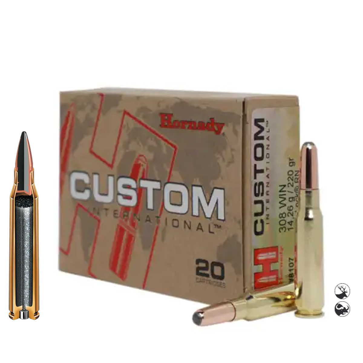 muniție .308 win 220 gr, Hornady 8107, Hornady Round Nose 308, cartușe vânătoare mistreț goană, muniție Hornady Oradea.