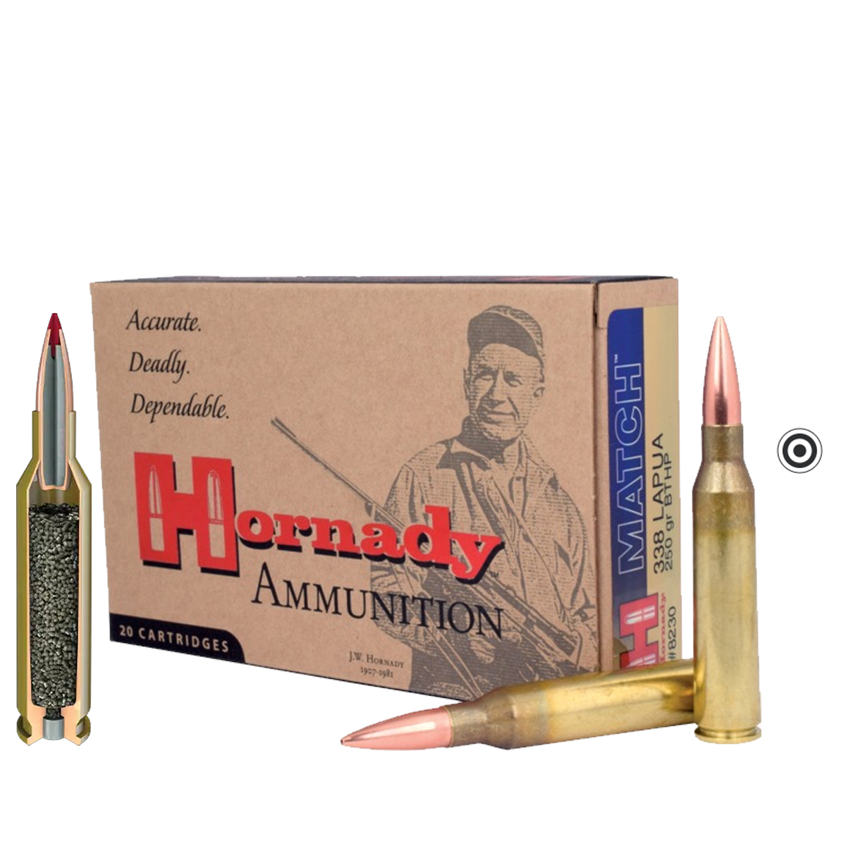 Alegeți Hornady BTHP Match pentru a transforma fiecare tragere într-o dovadă de precizie absolută în calibrul 338 Lapua Mag!