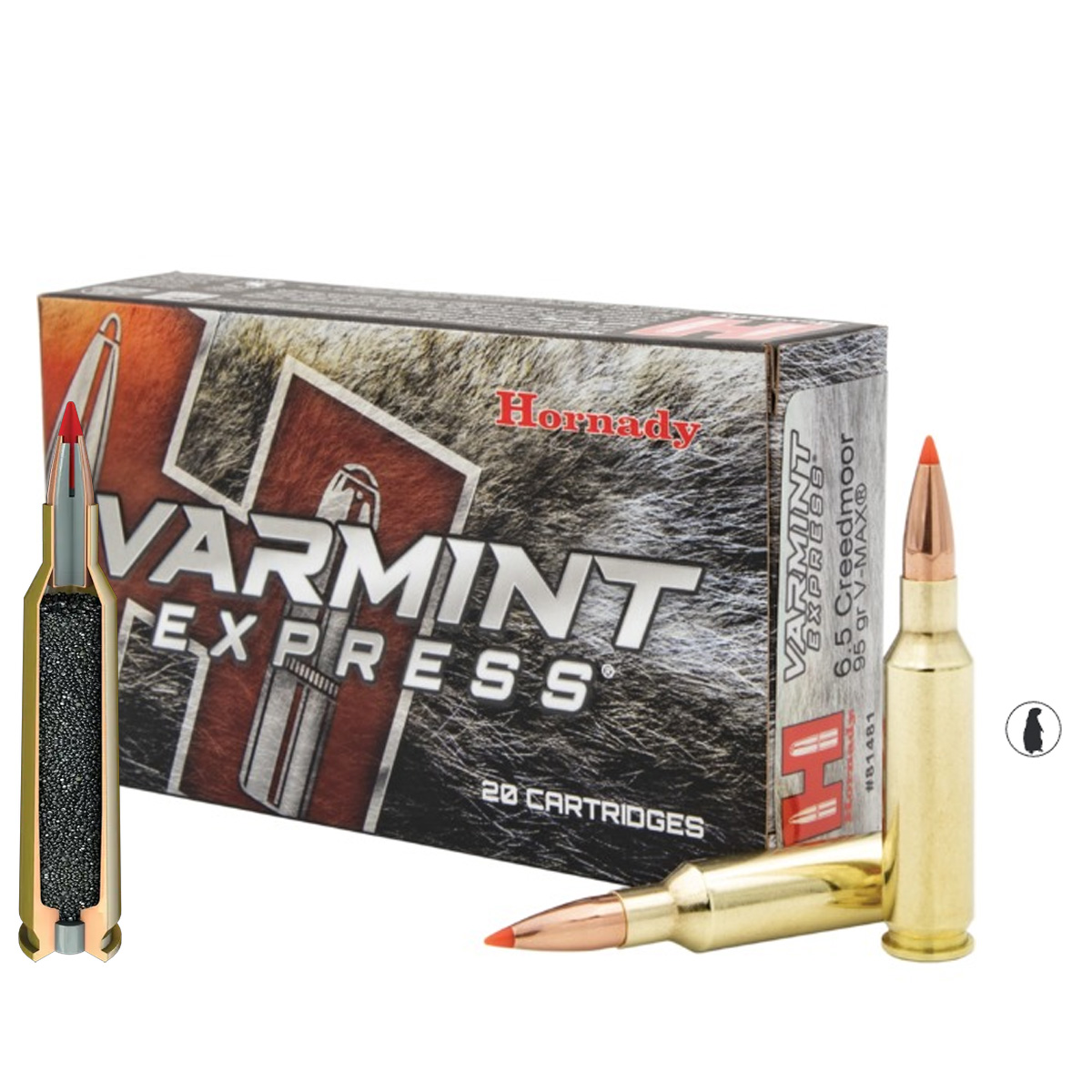 Du vânătoarea la dăunători la un nou nivel cu Hornady Varmint Express® 6.5 Creedmoor. Acest cartuș este proiectat pentru a oferi performanțe balistice superioare și un efect terminal exploziv. Echipat cu glonțul ultra-ușor de 95 grains V-MAX®, această încărcare transformă carabina ta de 6.5 Creedmoor într-o unealtă de precizie chirurgicală, capabilă să atingă viteze uluitoare și să livreze o fragmentare instantanee, chiar și la distanțe mari.