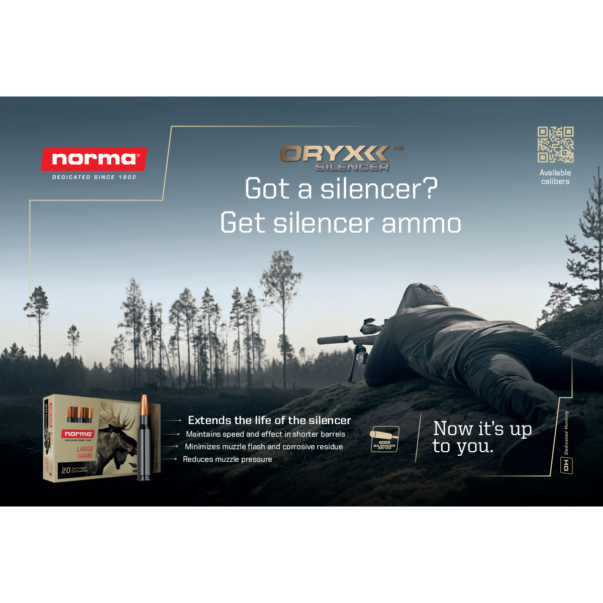 Norma Oryx Silencer în calibrul 6.5x55 SE (156 grains / 10.1 grame) este varianta optimizată a legendarului proiectil Oryx, creată special pentru vânătorii care utilizează arme cu țevi scurte și dispozitive de reducere a zgomotului (silencer/moderator). Această muniție rezolvă problema pierderii de viteză și energie care apare de regulă atunci când munitia standard este trasă din țevi de dimensiuni reduse.