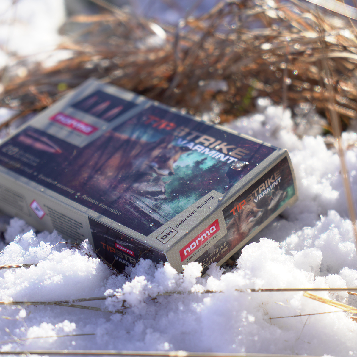 Performanță și Tehnologie: Proiectilul Tipstrike este echipat cu un vârf de polimer care optimizează coeficientul balistic și asigură inițierea imediată a expansiunii. Designul său structural include o manta de cupru subțire în partea frontală, responsabilă pentru o fragmentare rapidă și producerea unui șoc hidrodinamic puternic. Pentru a asigura penetrarea adâncă necesară la speciile de vânat rezistent, baza proiectilului este ranforsată printr-un sistem de blocare mecanică (lead-lock), care menține integritatea nucleului.