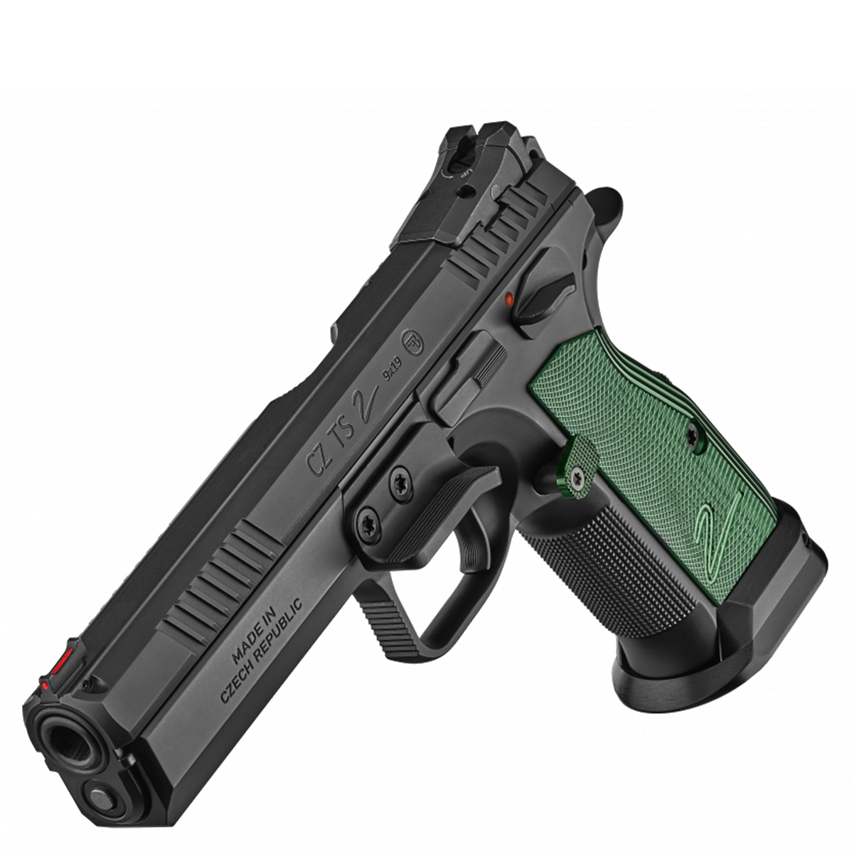 Pistolul CZ TS 2 Racing Green este varianta avansată a modelului TS 2, fiind optimizat pentru trăgătorii de elită din divizia IPSC Standard. Acesta se distinge prin componentele sale premium și finisajul iconic de culoare verde, oferind o experiență de tragere superioară datorită ajustărilor de fabrică menite să maximizeze viteza și precizia pe parcursul competițiilor.