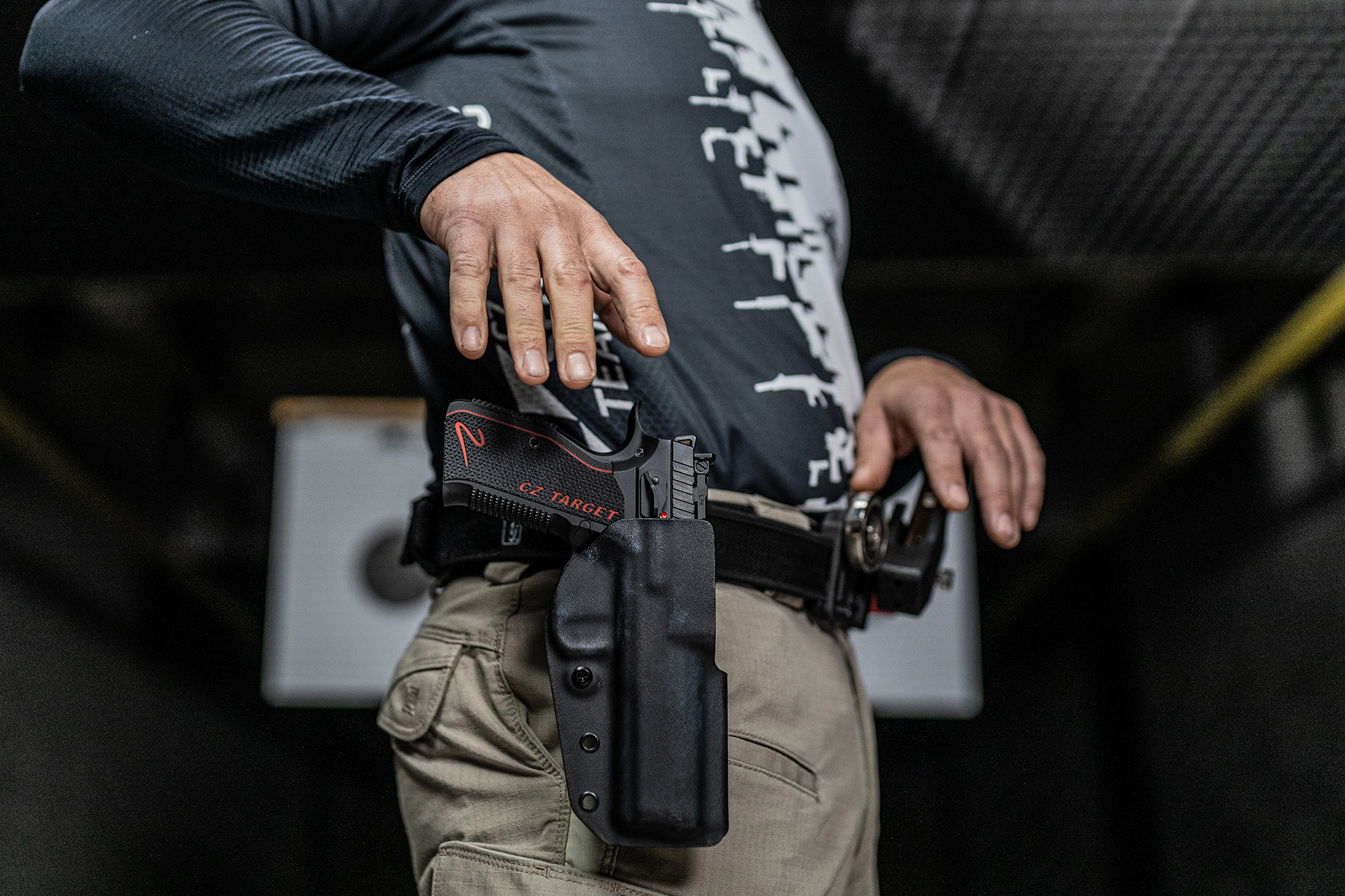 Ergonomie Shadow 2: Cadrul din oțel și crosele duralumin oferă o priză joasă și sigură, specifică platformei care domină competițiile IPSC.