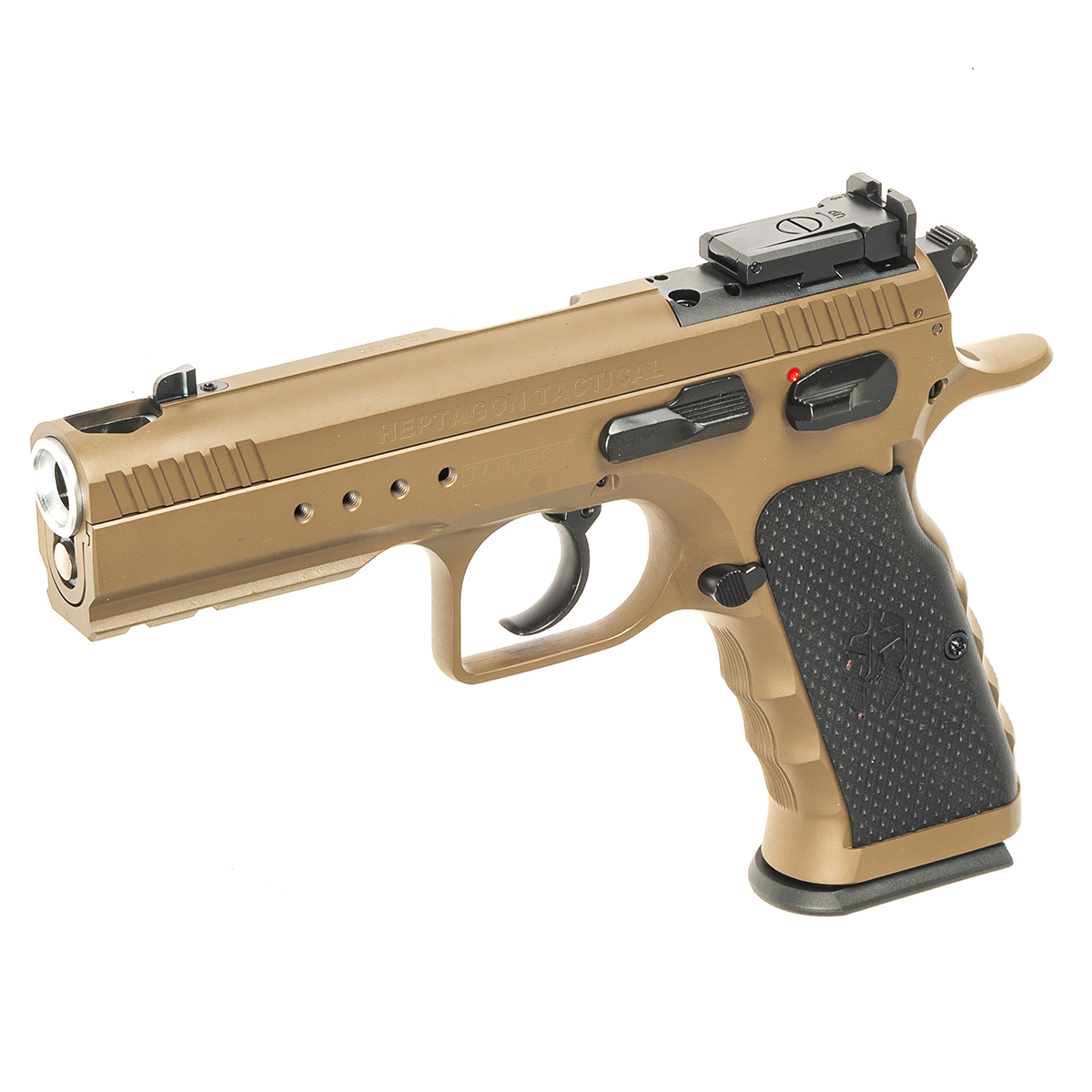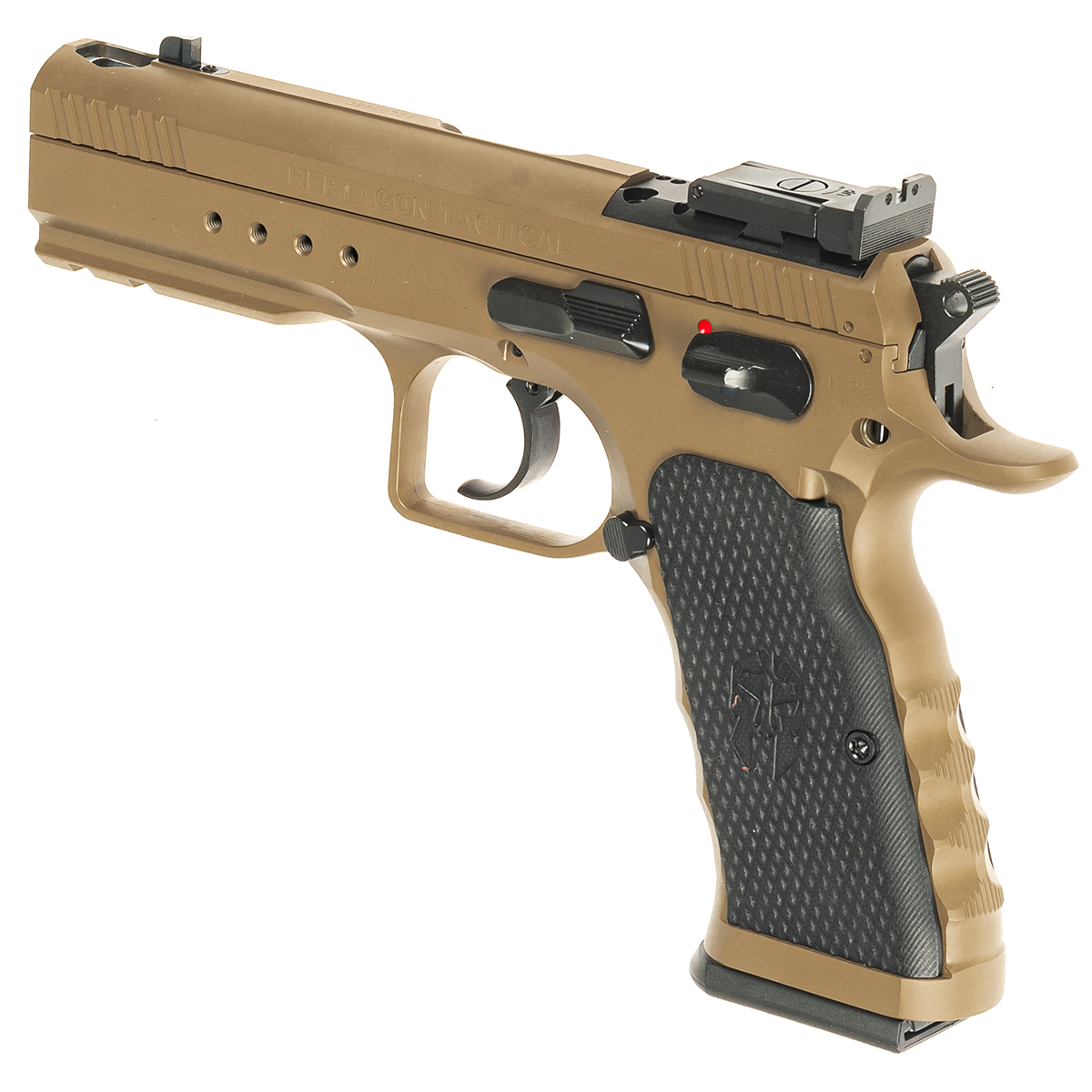 Pistolul Tanfoglio Heptagon Tactical reprezintă vârful de gamă pentru utilizare profesională și tactică în varianta 2025. Acest model impresionează prin finisajul modern FDE (Flat Dark Earth) și prin tehnologia avansată a țevii cu profil heptagonal, fiind conceput pentru trăgătorii care au nevoie de precizie chirurgicală și o fiabilitate de neclintit în medii solicitante.