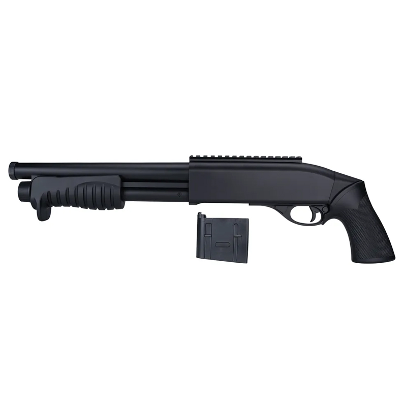 Acest model ASG Tactical Shotgun este perfect pentru pasionații de airsoft care vor un shotgun compact, ușor de folosit, care oferă o experiență tactică autentică fără complicații tehnologice sau de întreținere dificilă.