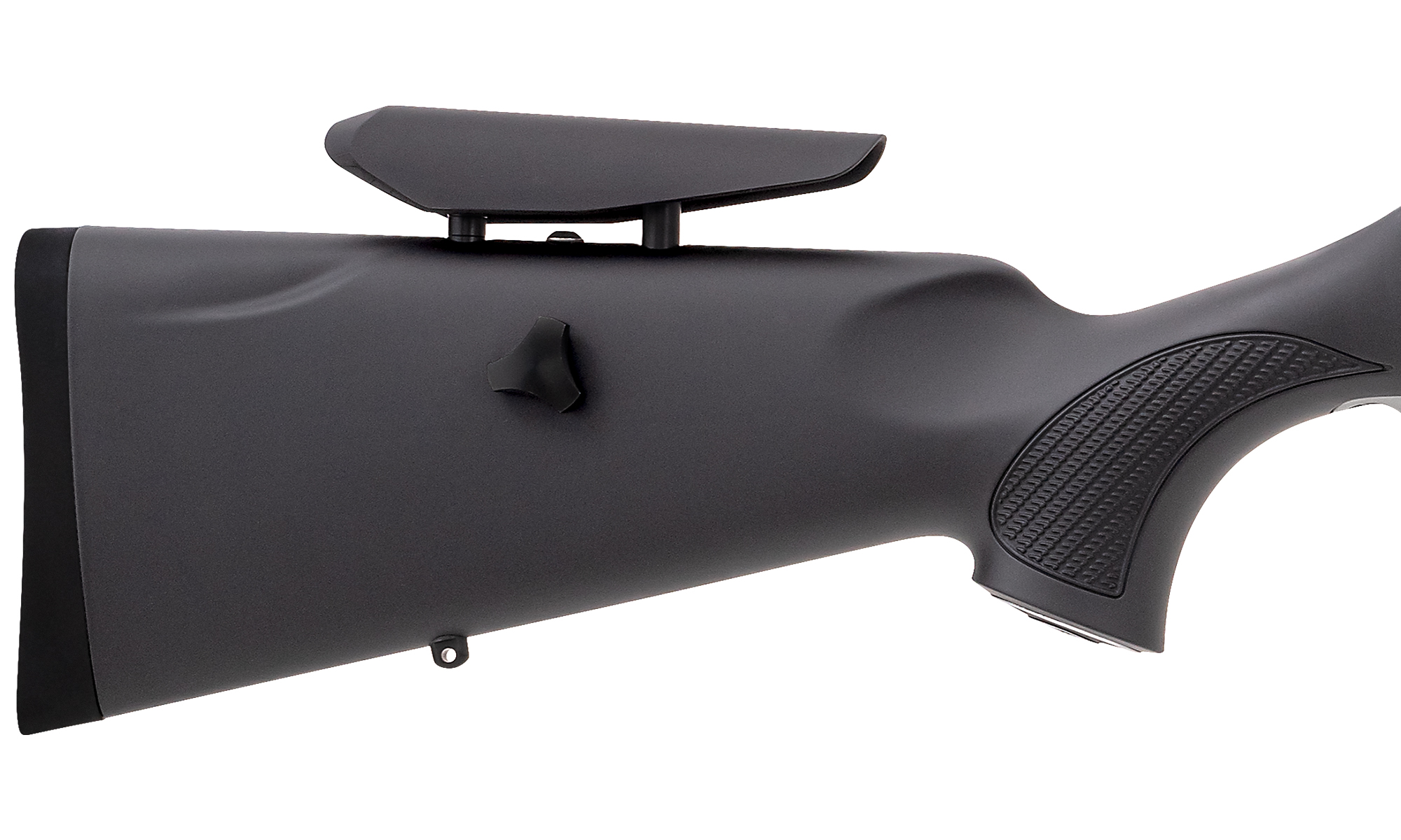 Pat Ergo Max XTA: Fabricat din polimer robust, patul dispune de un obrazar reglabil pe înălțime, permițând o aliniere perfectă a ochiului cu axa optică a lunetei, indiferent de mărimea montajului sau a opticii folosite.