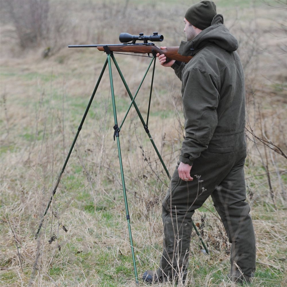 Cele trei picioare se fixează cu o buclă de transport, iar suportul pentru armă este acoperit cu Cordura rezistentă. Pentru stabilitate maximă, picioarele pot fi dotate cu plăci suplimentare (incluse în pachet). Finisajul verde mat oferă discreție în medii naturale, iar husa de umăr inclusă facilitează transportul.