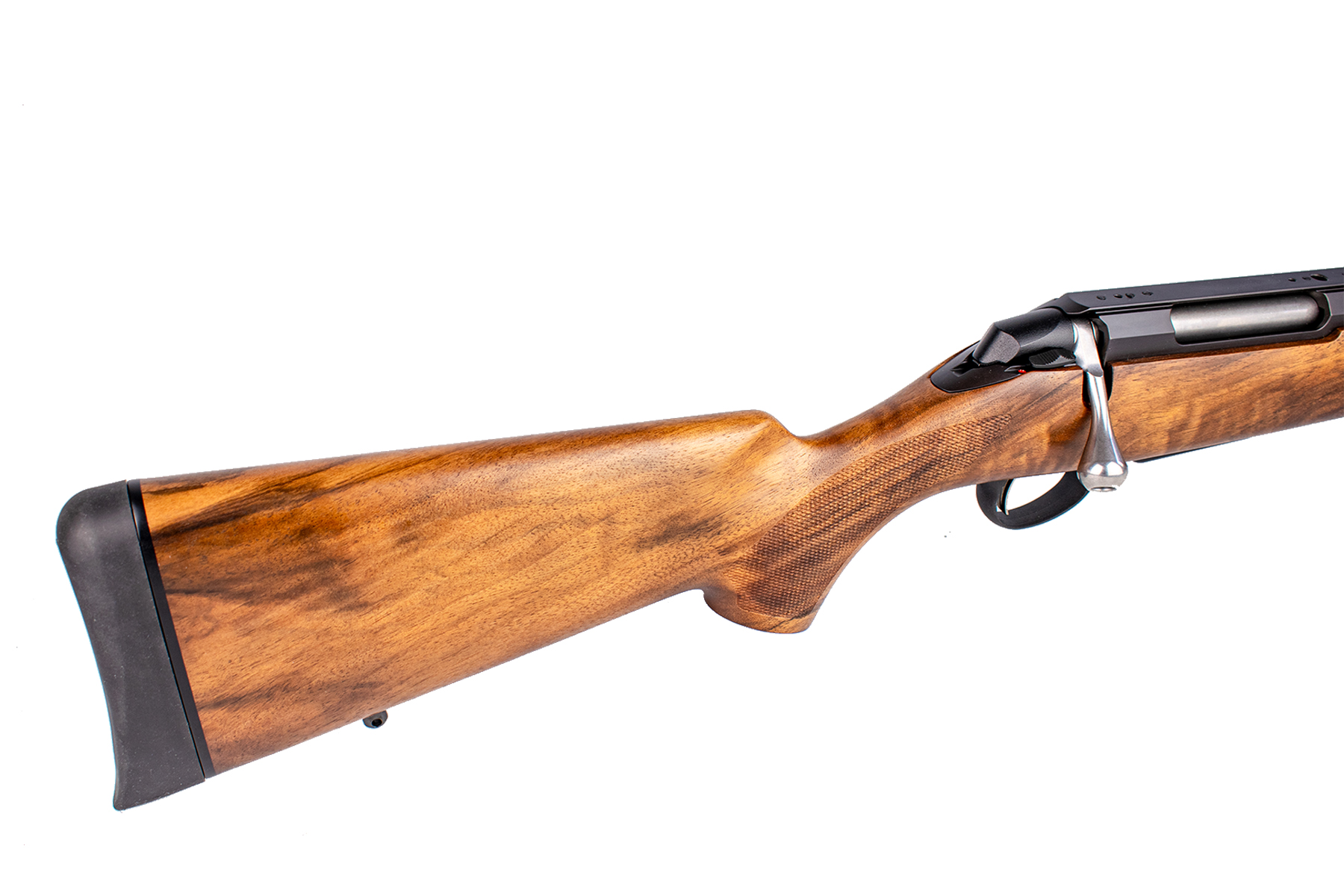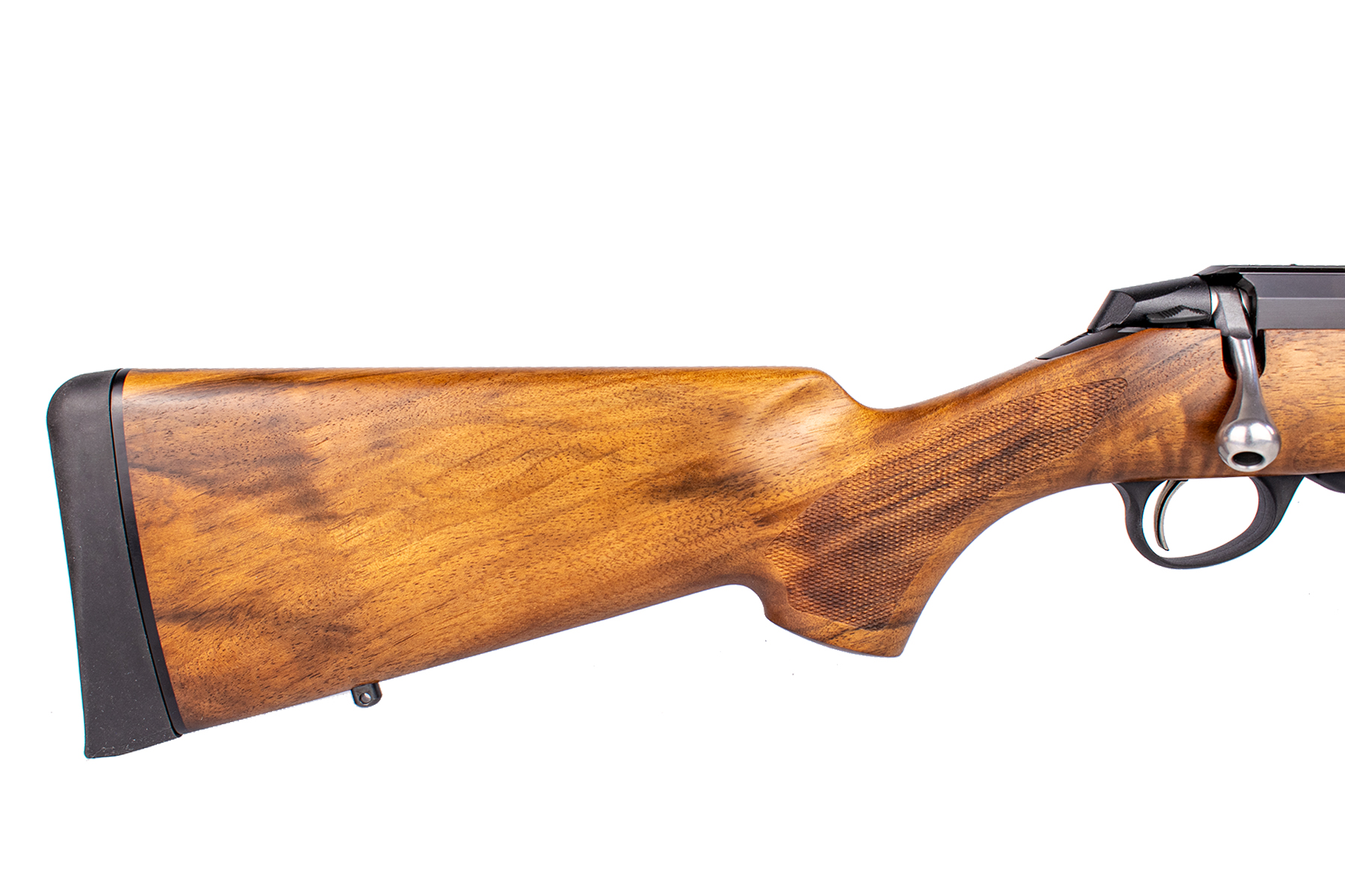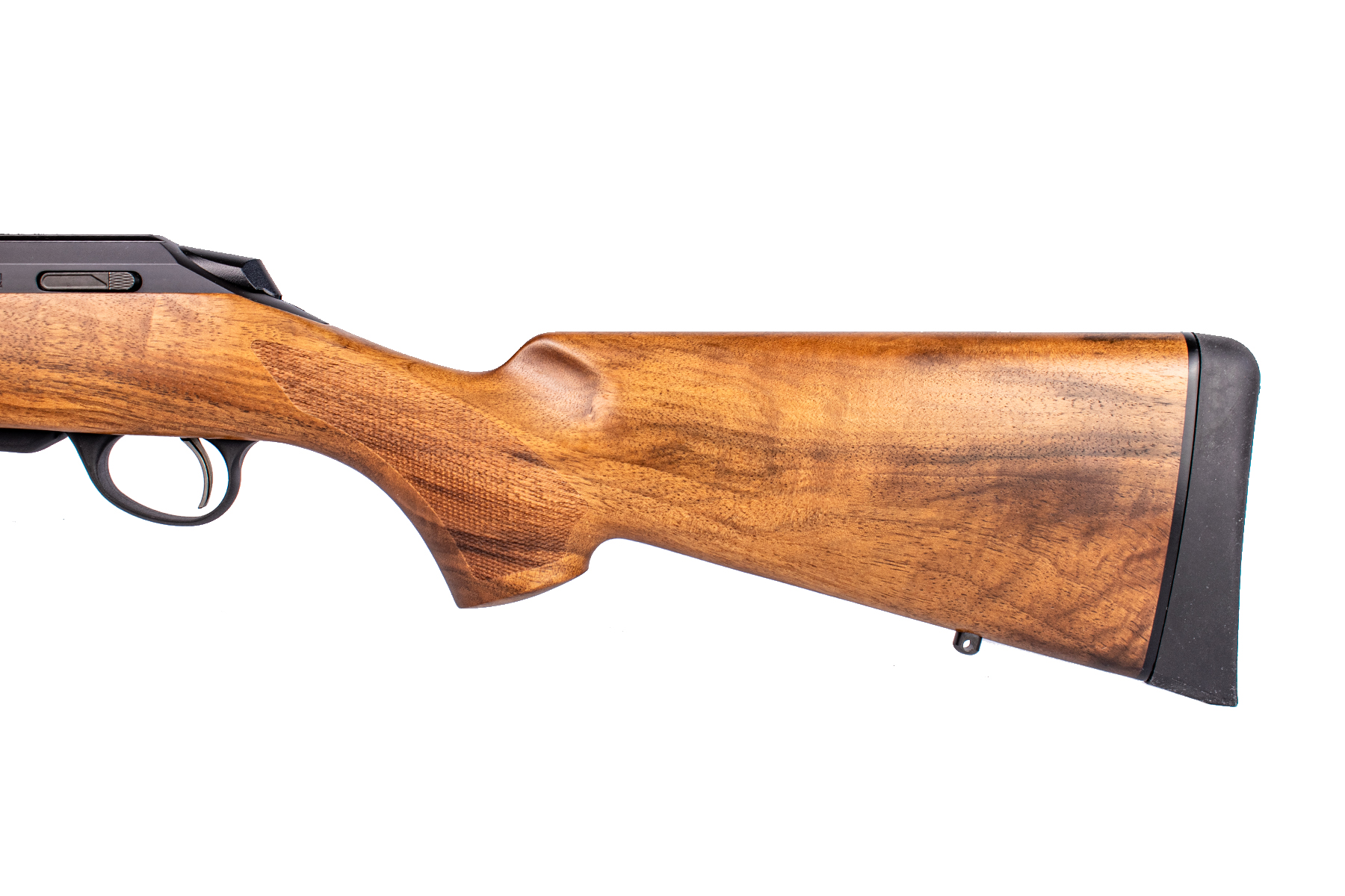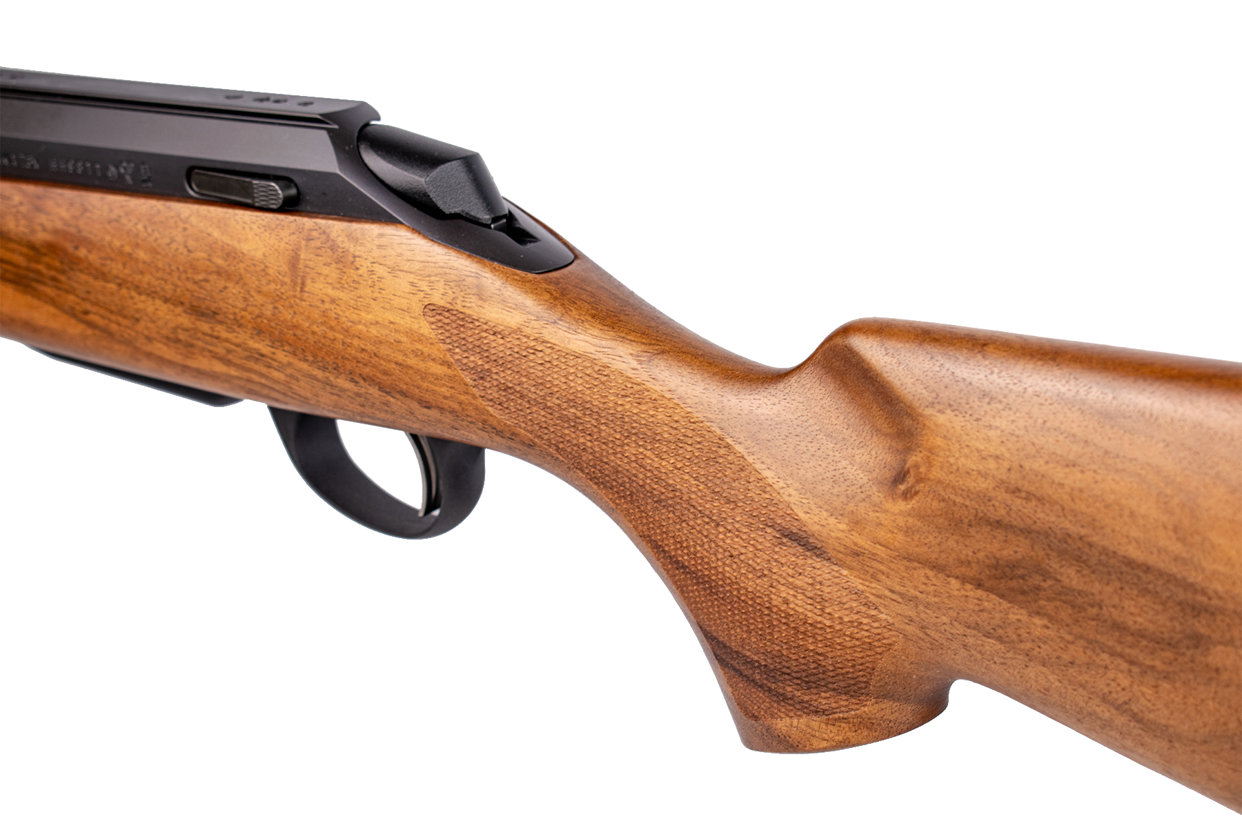 Modelul dispune de un pat din lemn de nuc de Grade 2.5, oferind un echilibru vizual deosebit și o textură naturală care se simte excelent în mână. Designul ergonomic și finisajele de înaltă clasă fac din Tikka T3x Hunter o armă nu doar performantă, ci și o piesă de colecție pentru orice pasionat de vânătoare clasică.