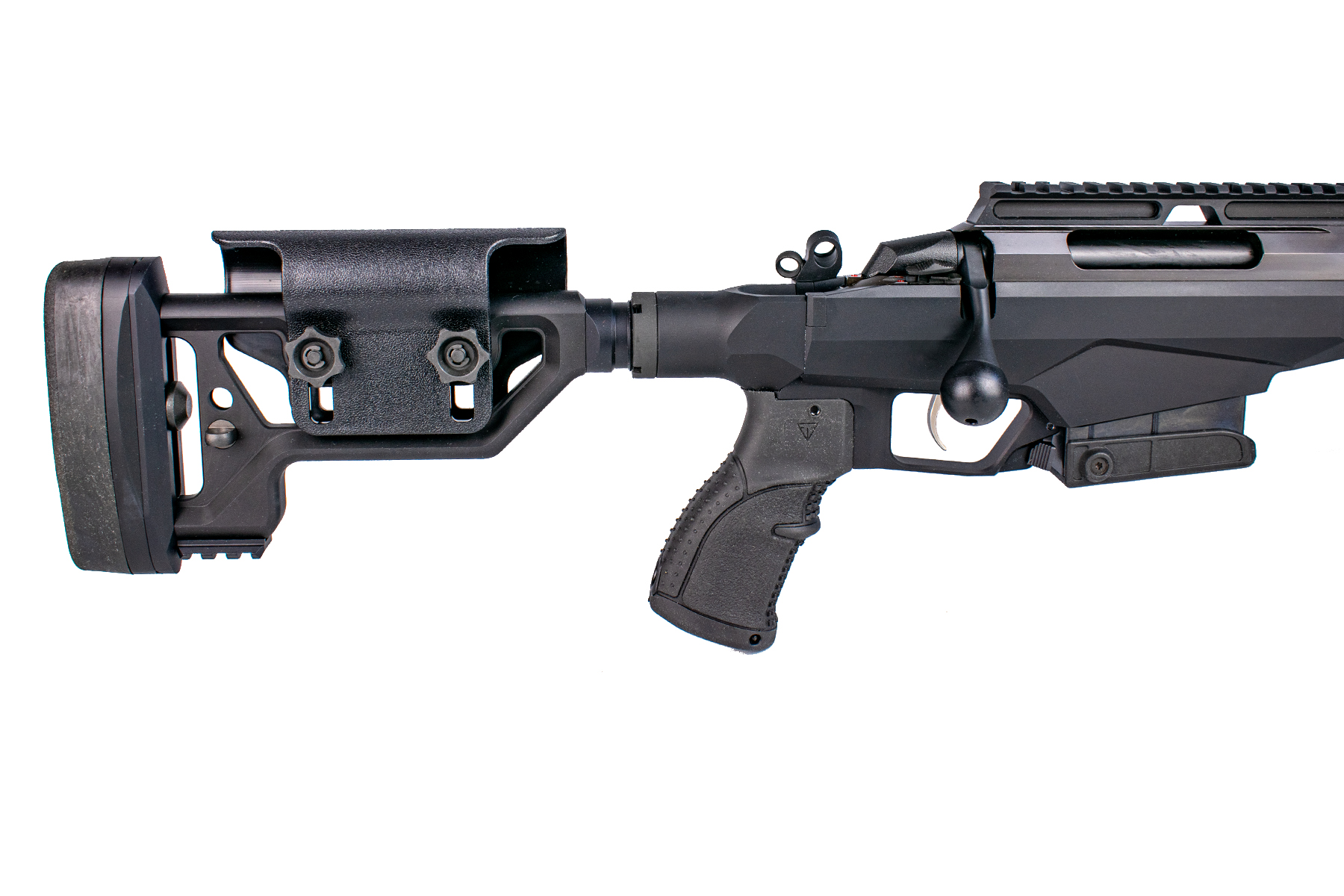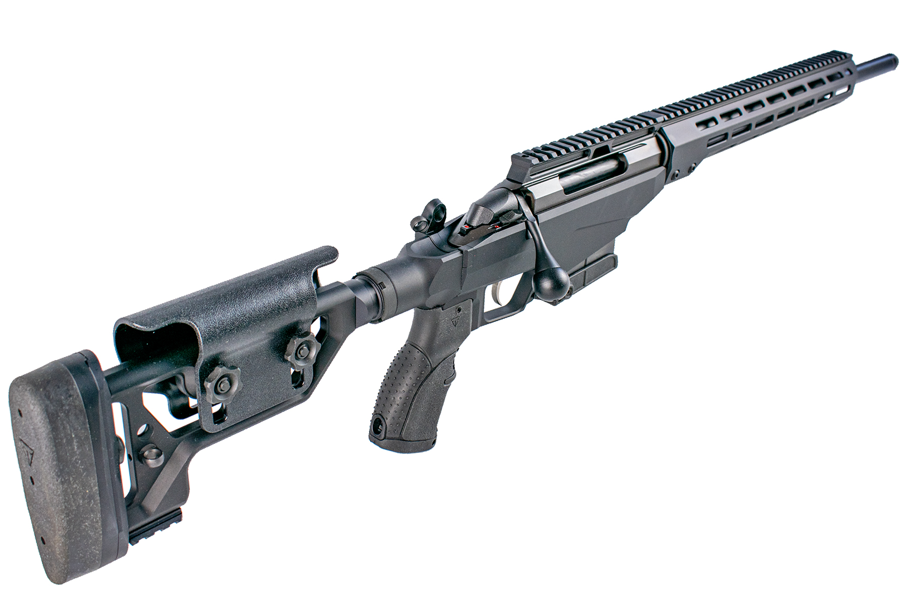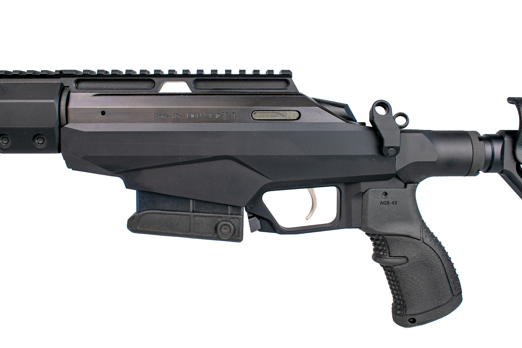 Construită pe șasiul modular din aluminiu, T3x Tact A1 asigură o rigiditate structurală excepțională. Țeava de 20 inch (508 mm), forjată la rece, dispune de un raport de demultiplicare (rate of twist) de 1:8", ideal pentru stabilizarea proiectilelor mai grele, specifice tragerilor de precizie. La capătul țevii regăsim un filet 5/8"-24, gata pentru montarea diverselor dispozitive de gura țevii.