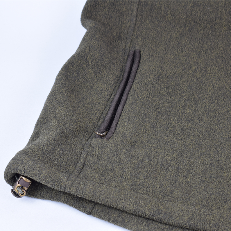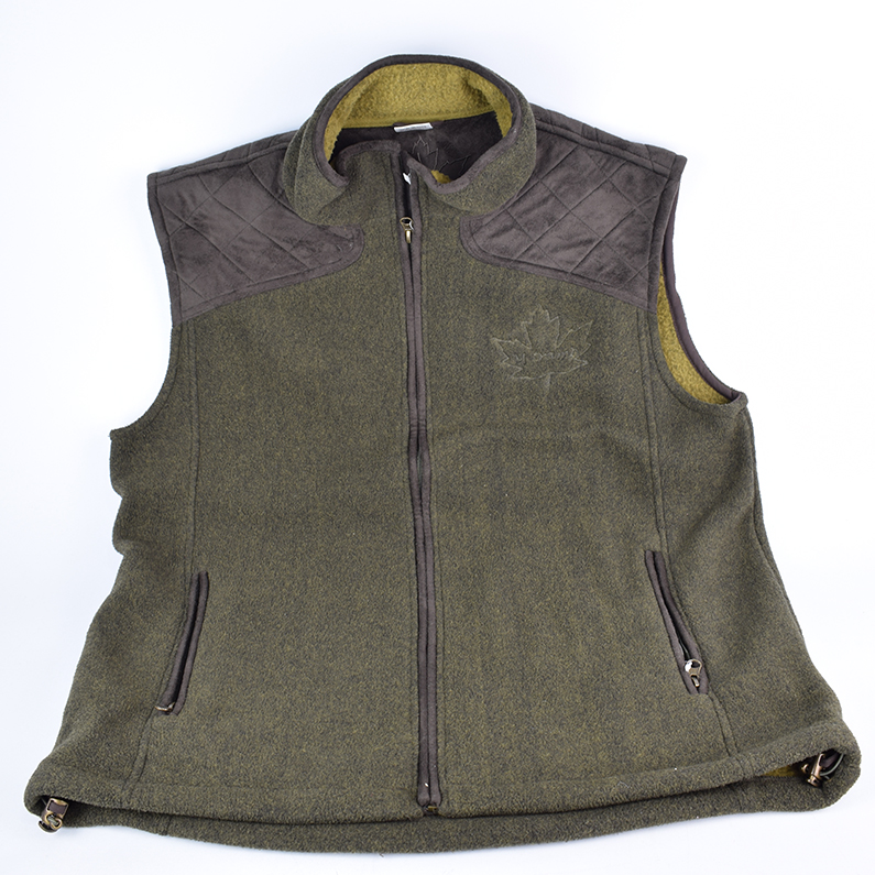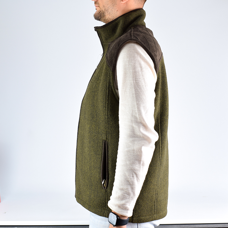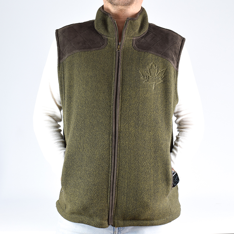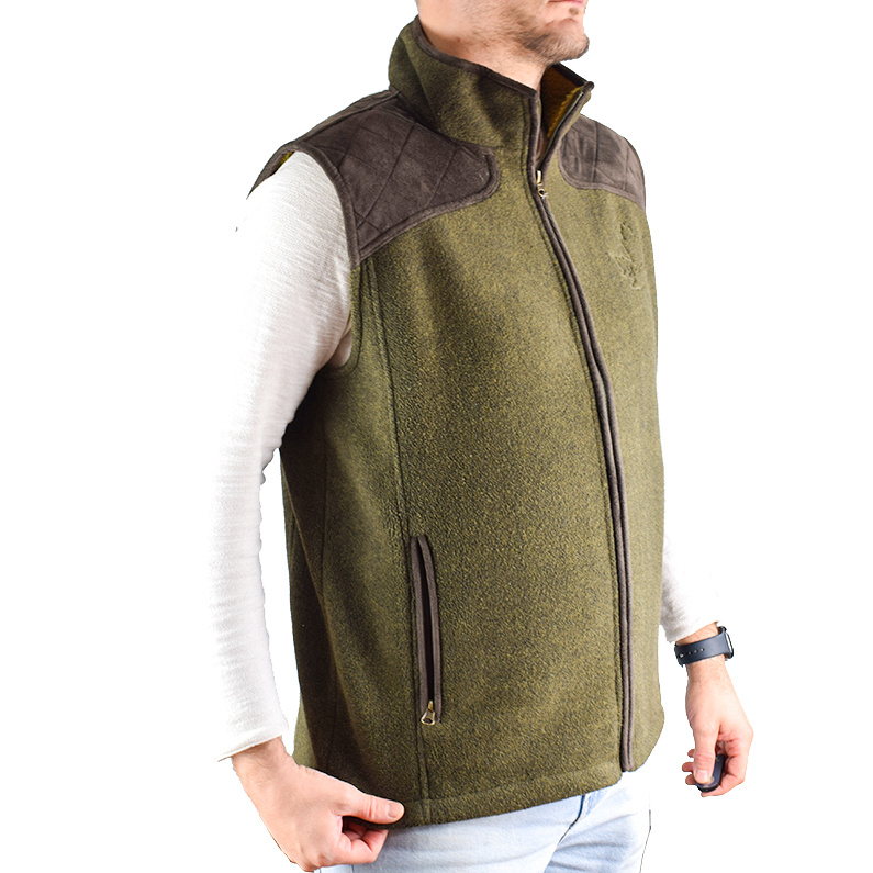 Vestă moale și confortabilă din fleece, cu inserții maro. Logo discret imprimat pe piept.